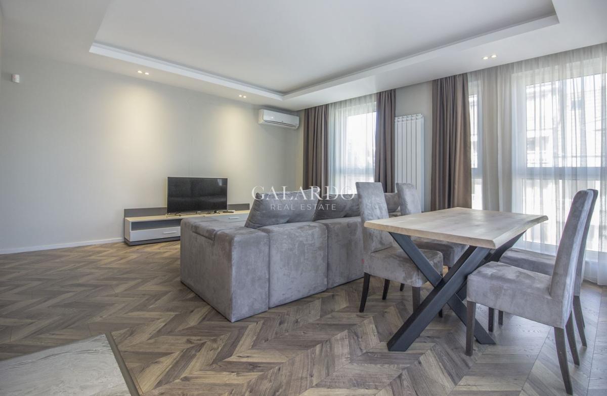 Жилището е обзаведено напълно и завършено с висок клас подови настилки.