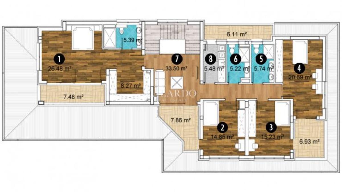 Къщата е с Разрешение за ползване от 2022г. и е с ЗП 560М2. Сградата е разположена в отделен парцел с отлични комунални услуги – канализация; газова мрежа; интернет връзка; целогодишен достъп до асфалт и вградени системи, които могат да се използват за алтернативни източници на енергия.