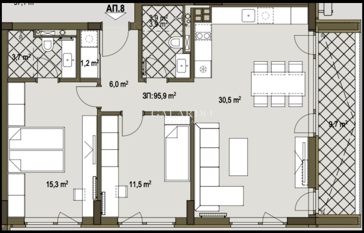 Galardo Real Estate представя на Вашето внимание модерен тристаен апартамент в новострояща се сграда в Бистрица – район, който се превърна от вилна зона в едно от най-предпочитаните места за живеене край София.