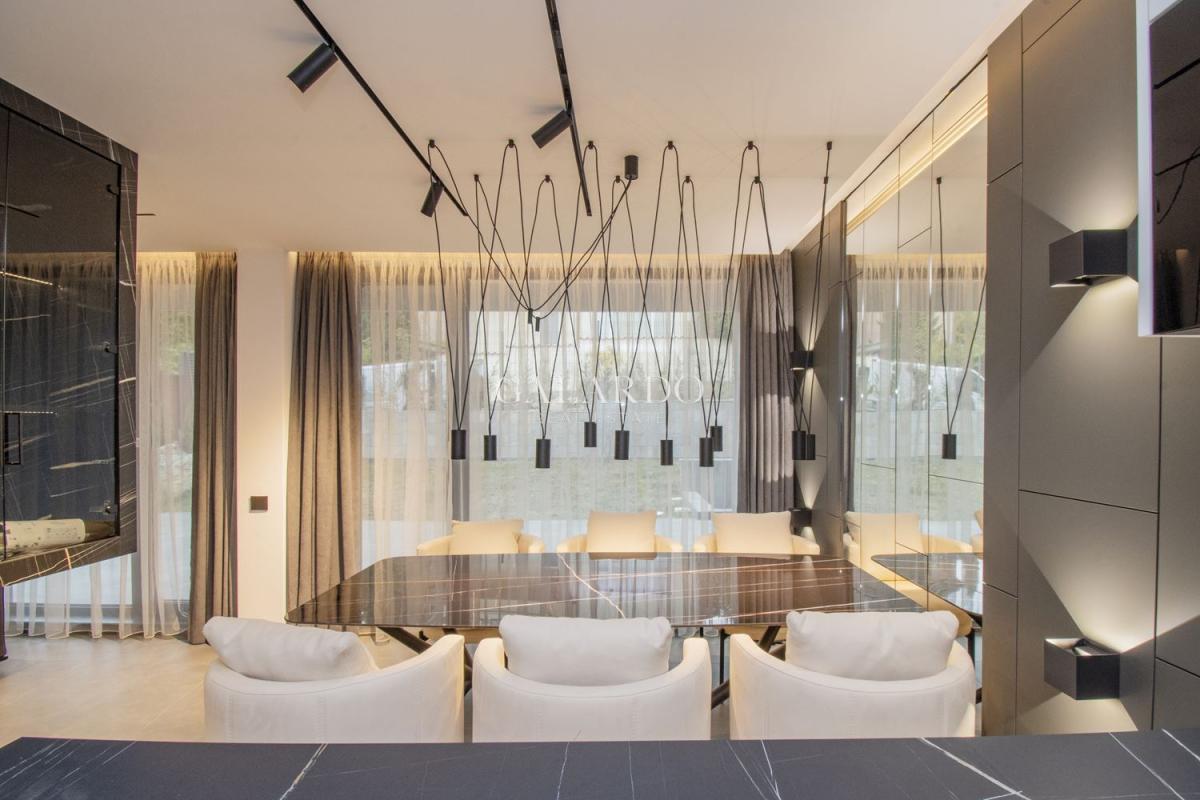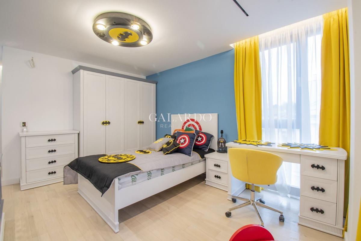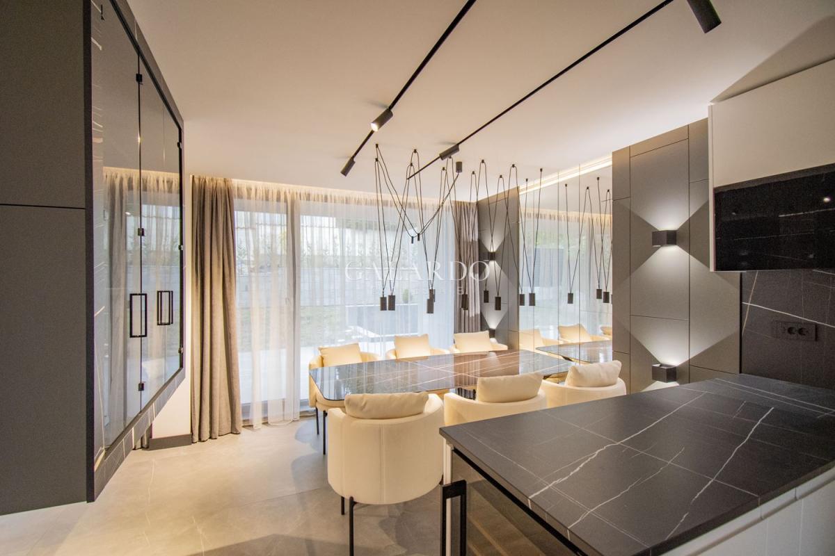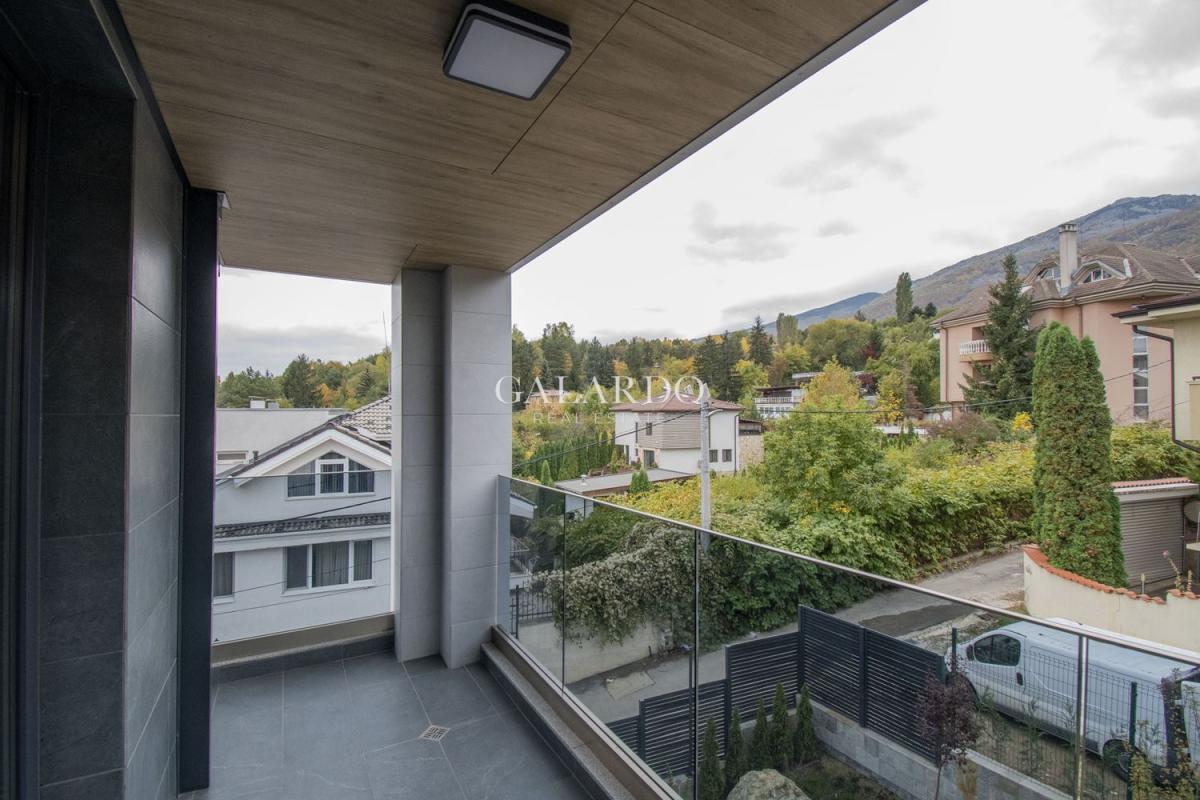 Galardo Real Estate представя чисто нова, напълно обзаведена редова къща, част от малък комплекс в Бояна, състоящ се от общо три къщи, като за общо ползване се предоставя басейн и барбекю. Къщата е крайна, изпълнена изцяло по дизайнерски проект до най-малкия детайл. Използваните материали и обзавеждане са висок клас, техниката е на марките NEFF и AEG.Отоплението и охлаждането се извършват чрез термопомпа Mitsubishi. От имота се открива панорамна гледка към Витоша и града, а локацията осигурява бърз достъп до Околовръстен път и бул.България!