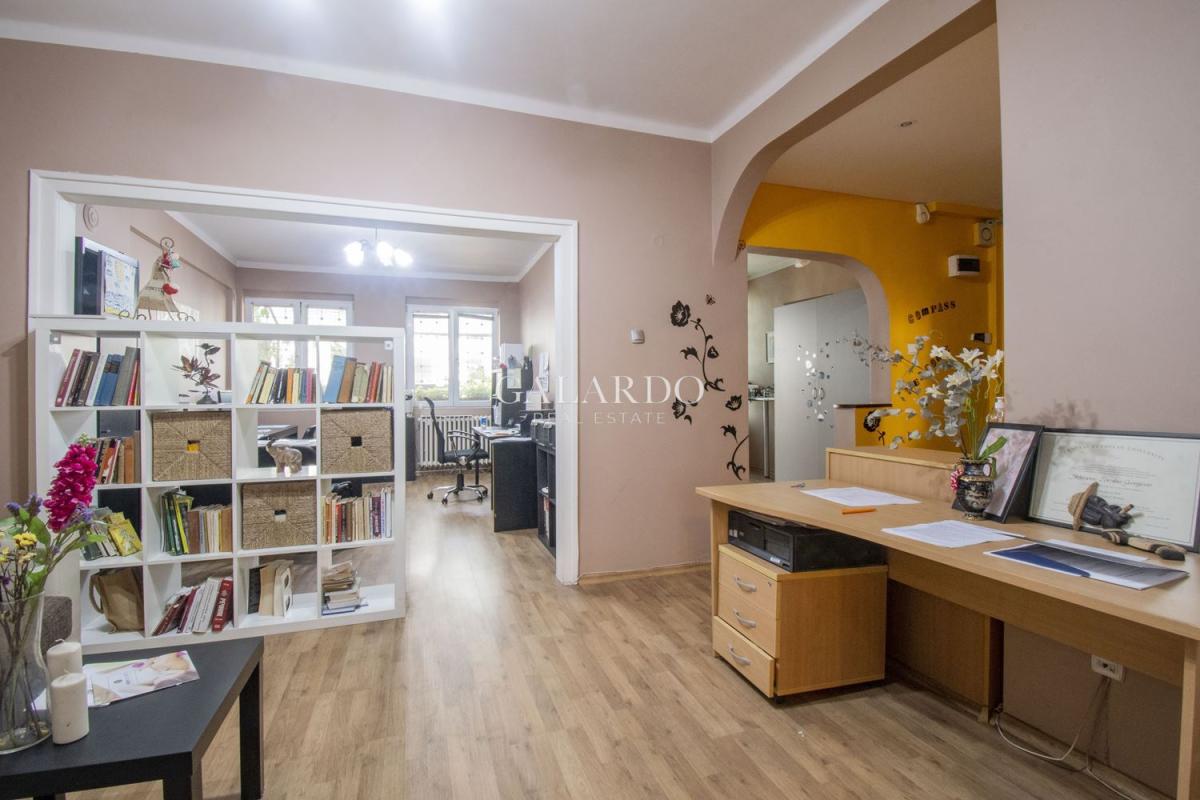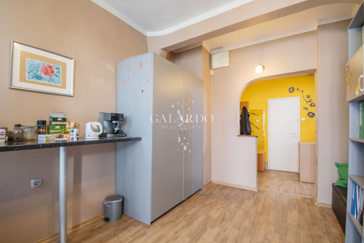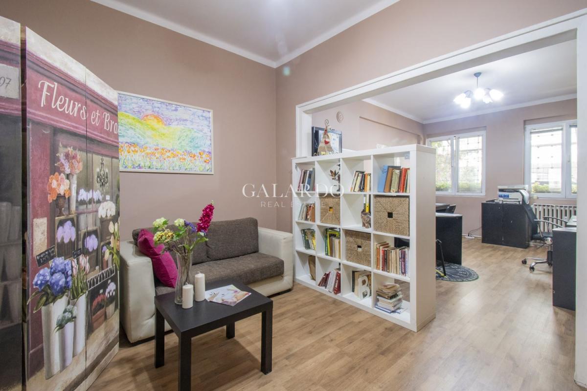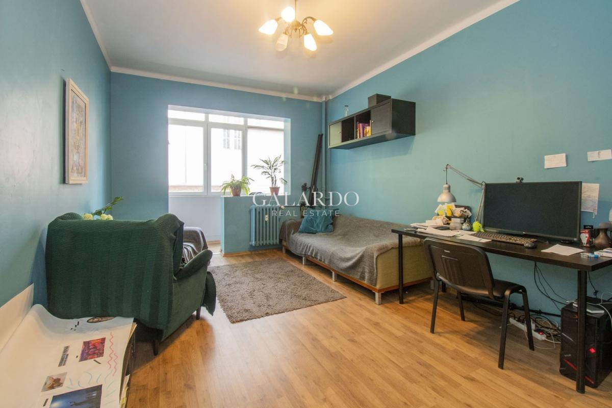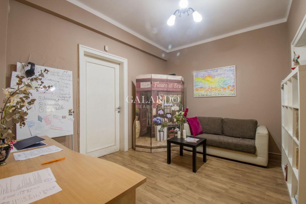 Galardo Real Estate представя един изключителен имот в масивна тухлена сграда от 1940г. в Топ центъра на София, на метри от ул.Московска. Апартаментът се отличава с простор, високи тавани и разпределение, което предполага различни преустройства по желание на бъдещия му собственик. Имотът има следното разпределение: входно антре, отделна кухня, просторен вестибюл/стая, от който се влиза в две отделни помещения, едното с остъклена малка тераса, баня с тоалетна, голяма тераса. Чистата застроена площ е 107 кв.м, + тераса от 17 кв.м. Отоплението е на ТЕЦ. Изложението е изток и запад. С мазе и таван.