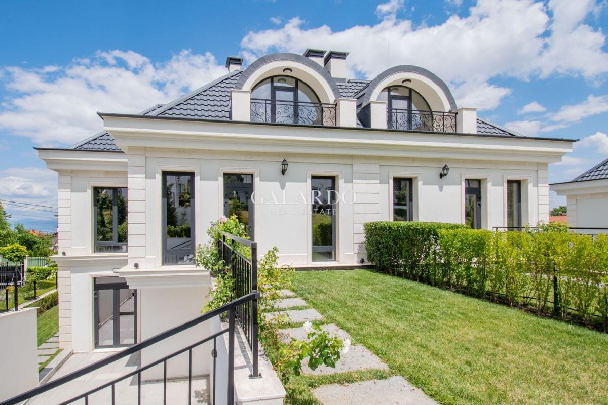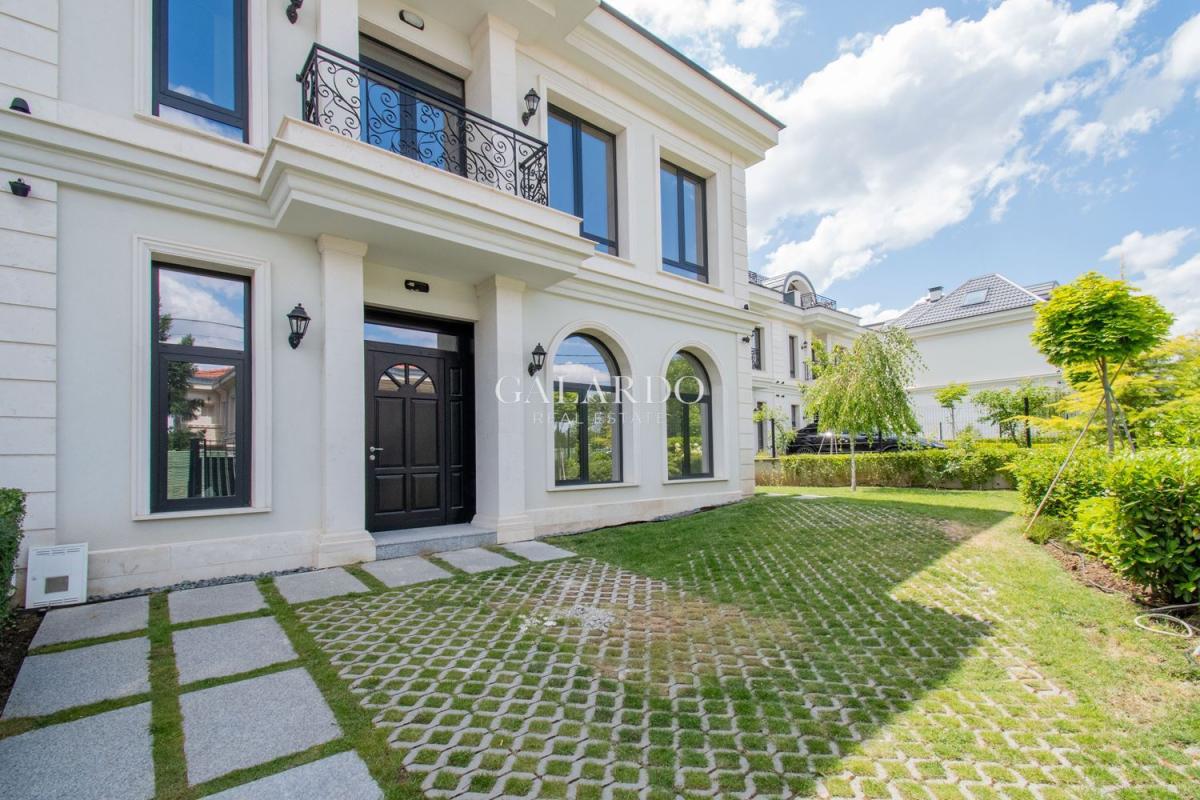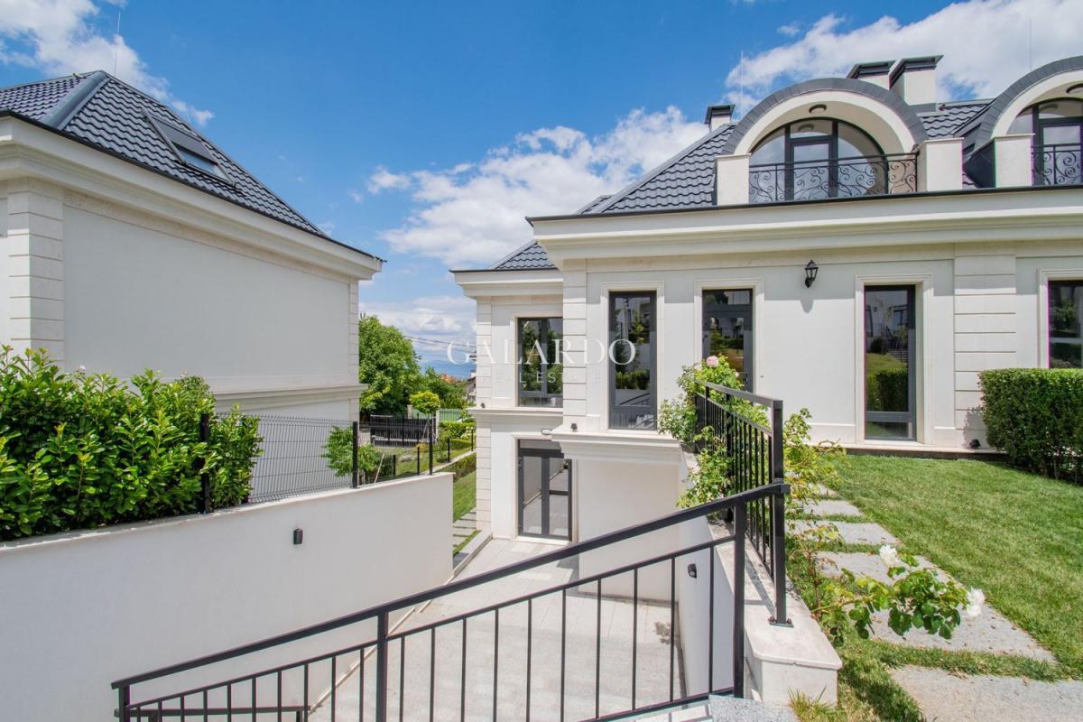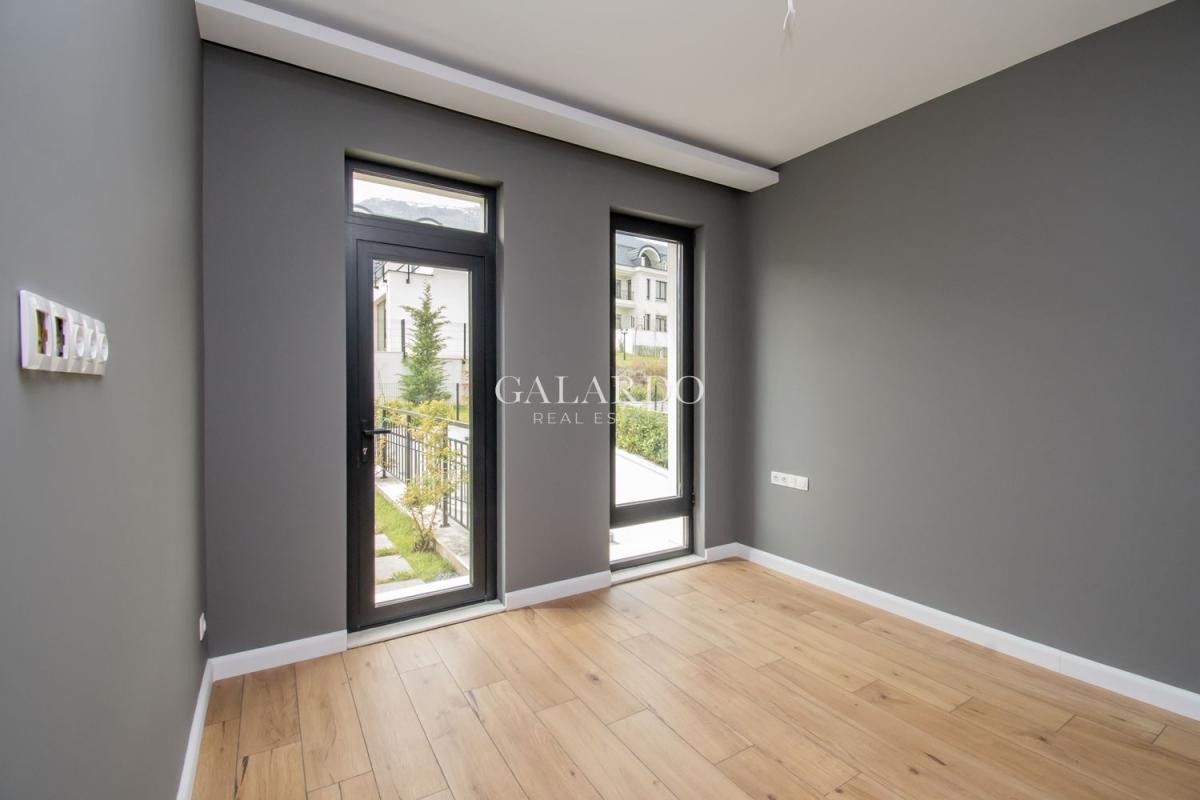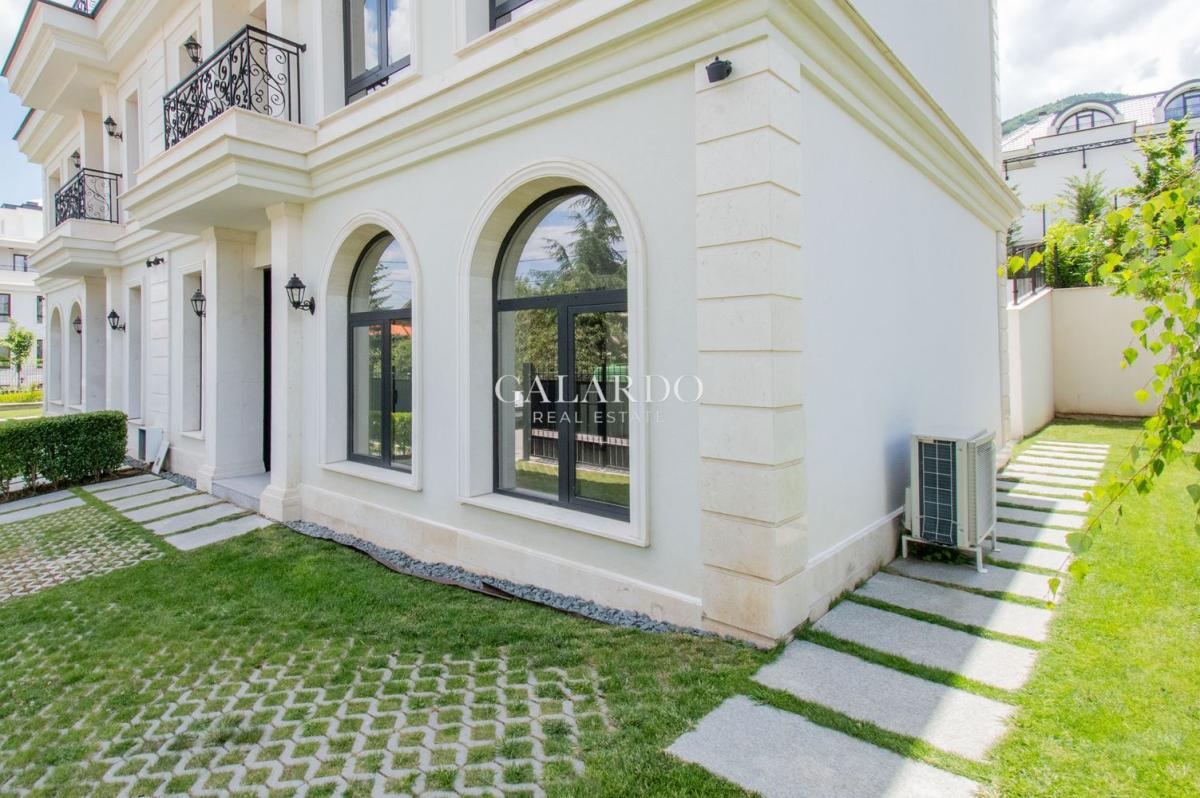 Galardo Real estate представя модерна градска къща с 4 спални с разгърната плoщ от 240 квадратни метра, с етажиран самостоятелен двор и гледки към вътрешния парк и планината.
