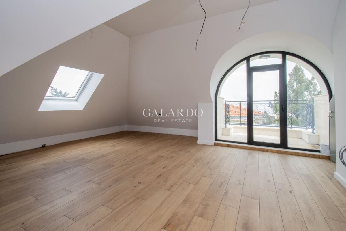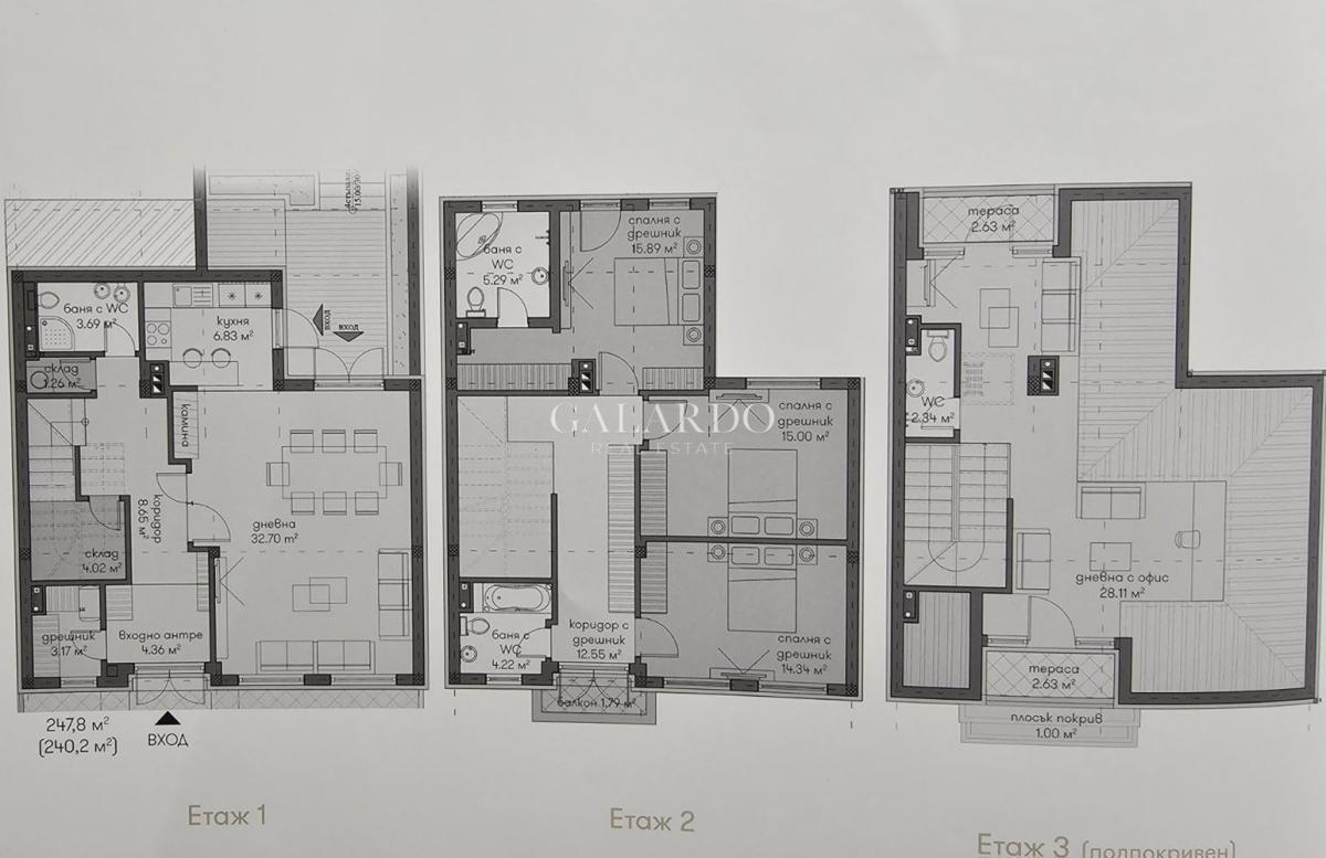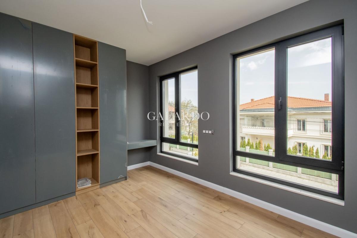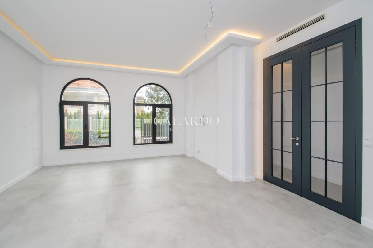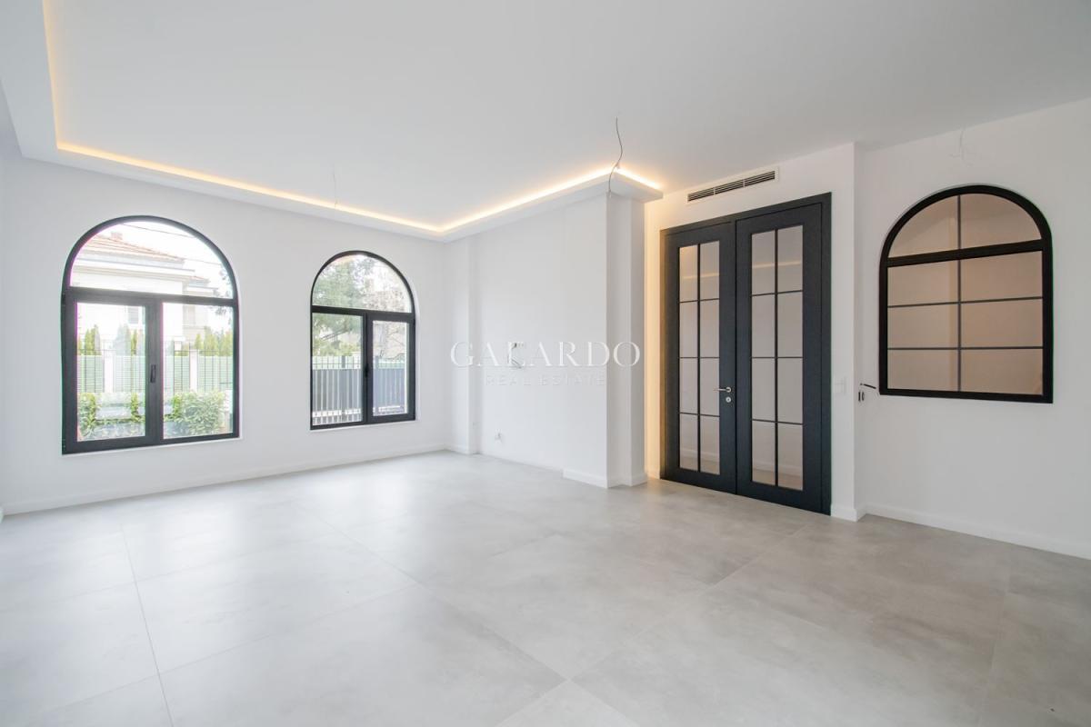 Galardo Real estate представя модерна градска къща с 4 спални с разгърната плoщ от 240 квадратни метра, с етажиран самостоятелен двор и гледки към вътрешния парк и планината.