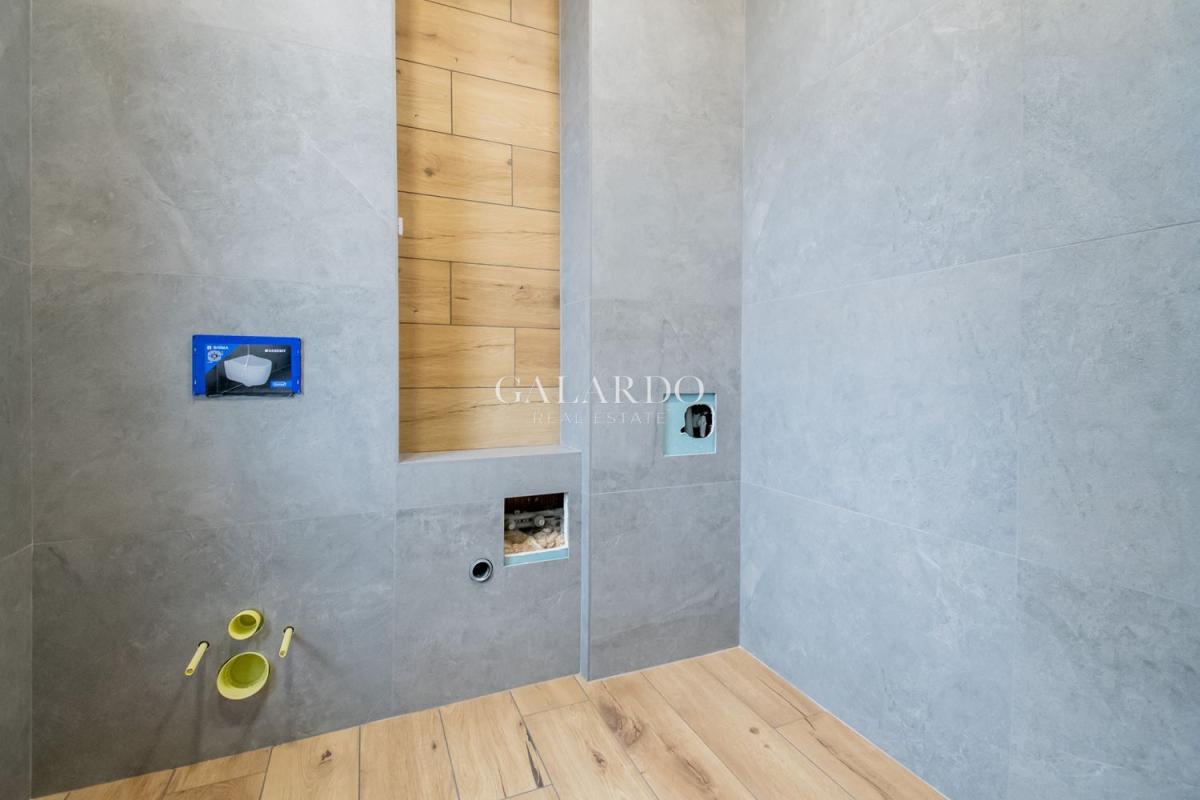 Къщата се предлага за продажба с луксозни довършителни работи както и с термопомпа с изградено подово отопление, централна климатизация, газово котле. Завършена до ключ с интериорни врати, подови настилки, оборудвани бани и гардероби във всички помещения.