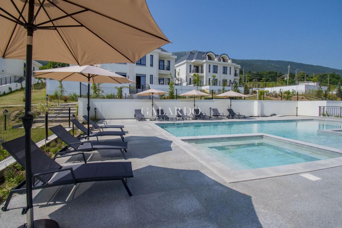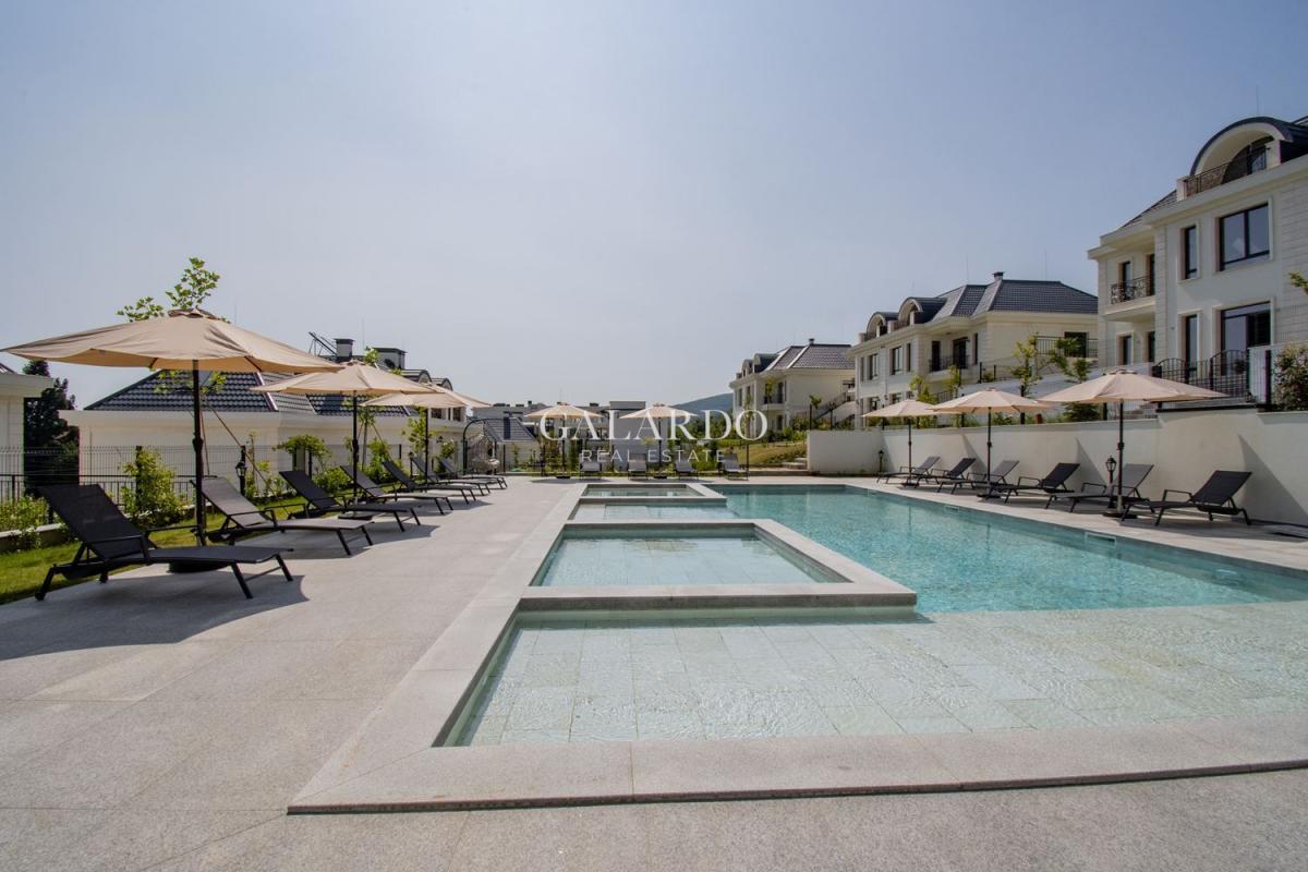 Намира се в луксозен комплекс от затворен тип, разположен в престижния район Драгалевци, предлагащ невероятно спокойствие и комфорт. Отличната локация предоставя на живущите непосредствена близост до Национален парк Витоша и също така лесен и бърз достъп до централната градска част на София.Територията на комплекса е с впечатляващ богато озеленен вътрешен парк, открит басейн, места за отдих и наслада на заобикалящата природа. Удобствата в комплекса включват два просторни подземни паркинга, 24-часова жива охрана, видеонаблюдение, контрол на достъпа, фитнес, сауна, зона за отдих и масажи, открита детска площадка с атракциони и детски клуб за партита и забавления.