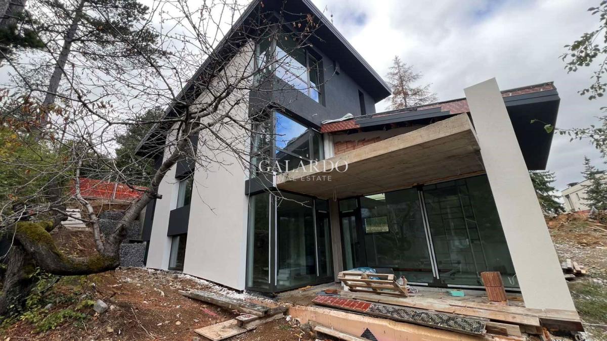 Galardo Real Estate има удоволствието да Ви представи самостоятелна нова къща, разположена в подножието на Витоша, с престижна локация в кв.Драгалевци. Къщата съчетава в себе си съвременен дизайн, прецизно разпределение и удобства. Къщата е разпределена на три нива включващи: Хол с трапезария и отделно ниво кухня, Емпоре, 4 спални + 1 кабинет/фитнес, 3 бани, 2 тераси, гараж за 2 автомобила и възможност за паркиране на още 3 автомобила отпред. От двора и имота се откриват прекрасни гледки към Витоша и града.
