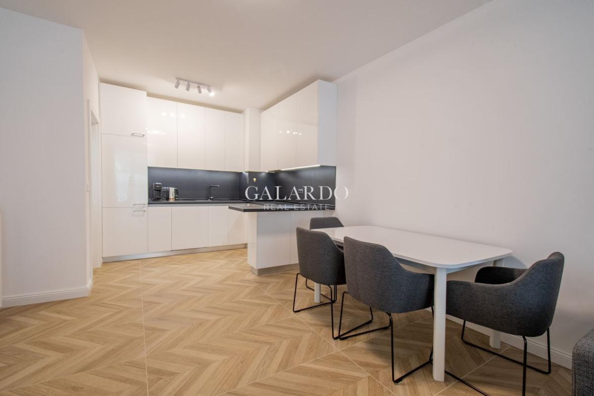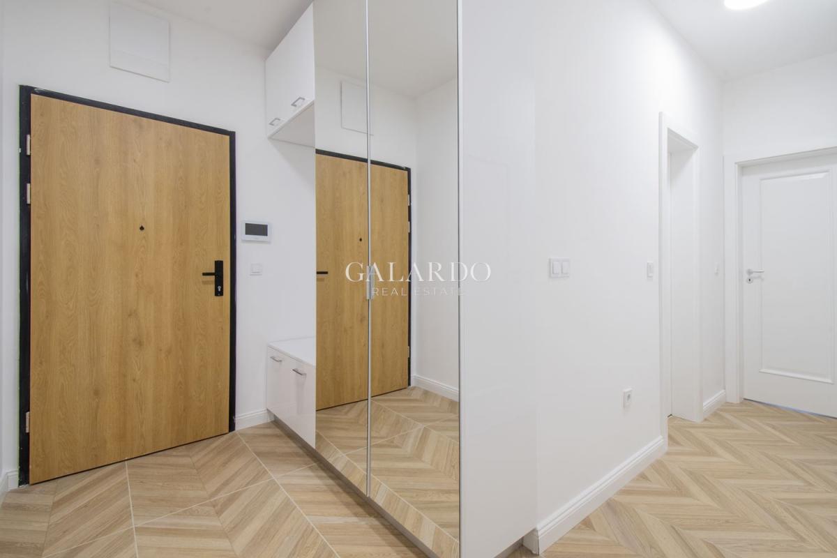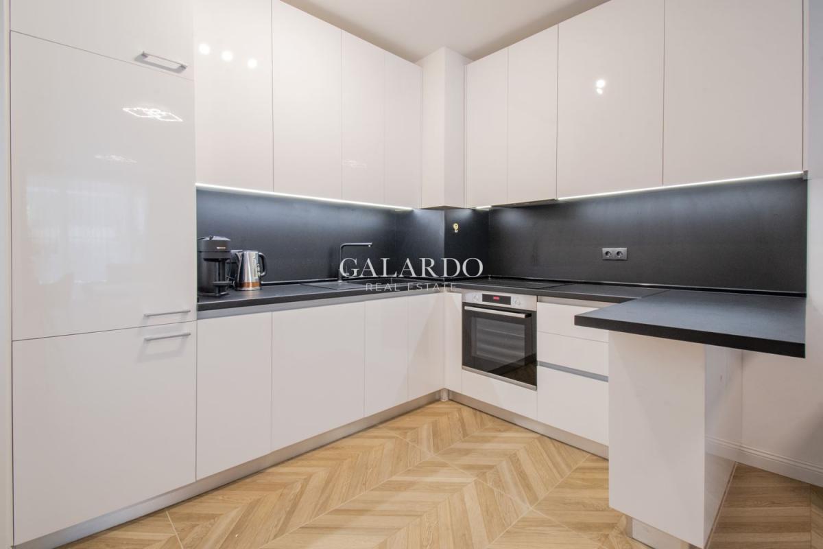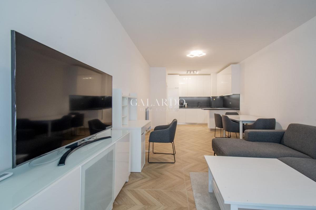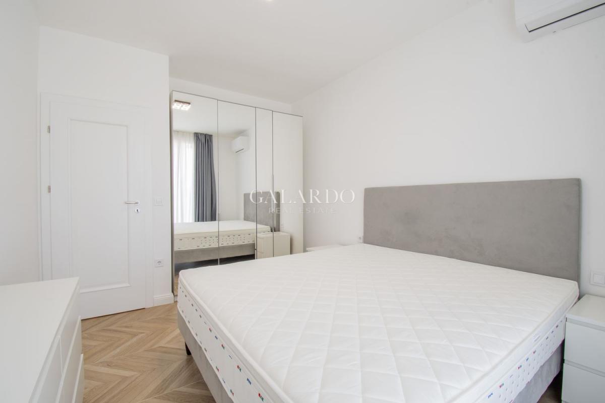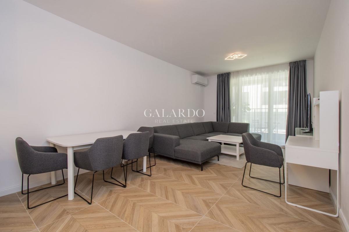 Апартаментът е със застроена площ 91.39кв.м., с изключително светли и просторни помещения. Обзавеждането е с висок клас мебели, кухнята е оборудвана с електроуреди на Bosch. Сградата е газифицирана, като в жилището има монтирано газово котле, както и климатици.