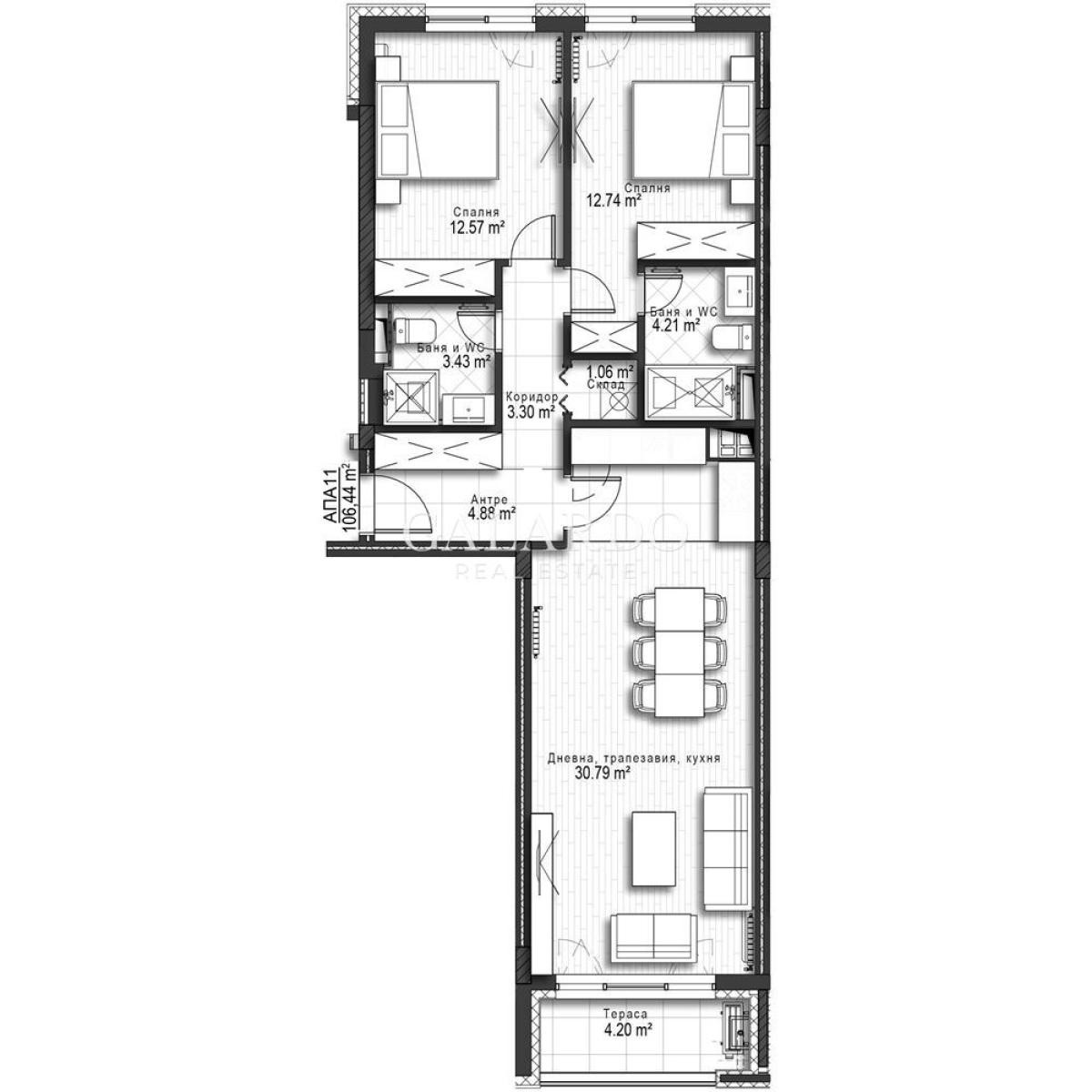Galardo Real Estate с удоволствие представя обзаведен апартамент с две спални в кв. Хладилника.