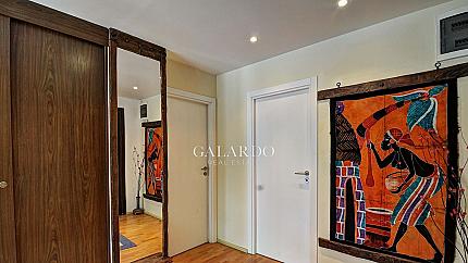 Представяме Ви чудесен апартамент, напълно оборудван и обзаведен в дизайнерски стил. Жилището е на пети етаж в затворен комплекс с външен басейн, градина, фитнес, сауна, детска площадка, 24-часова охрана и още много удобства. Изложението на апартамента е юг с гледка към Витоша и басейна.