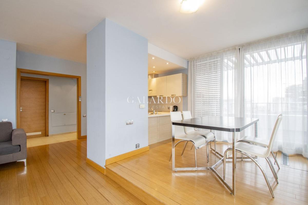Апартаментът е разположен на 8-ми етаж и разполага с чудесна тераса с панорама към планината.. Застроена площ 101.66м2
