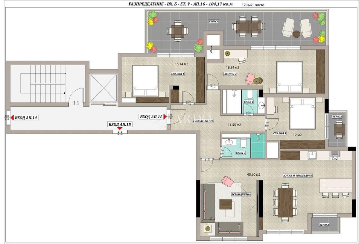 Сградата ще е с контролиран достъп и видеонаблюдение, зелени площи с улично и фасадно осветление с висок енергиен клас.