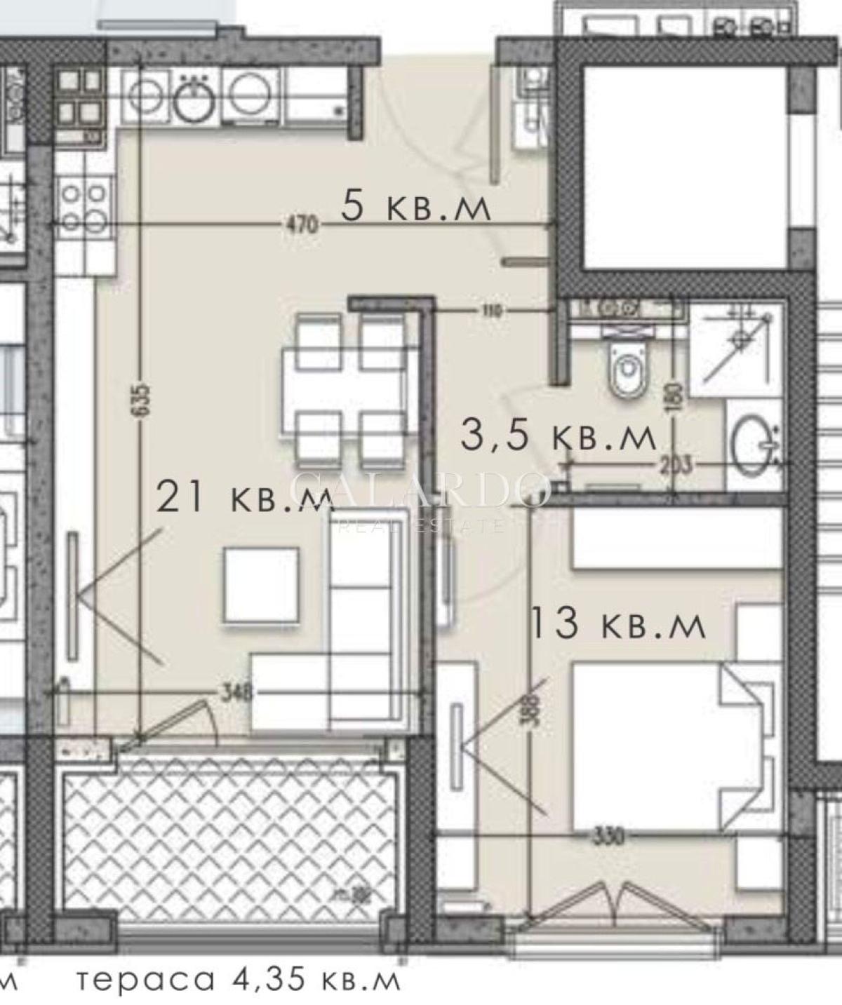 Имотът е с югоизточно изложение, ситиуран на втори жилищен етаж. Просторни и светли помещения.