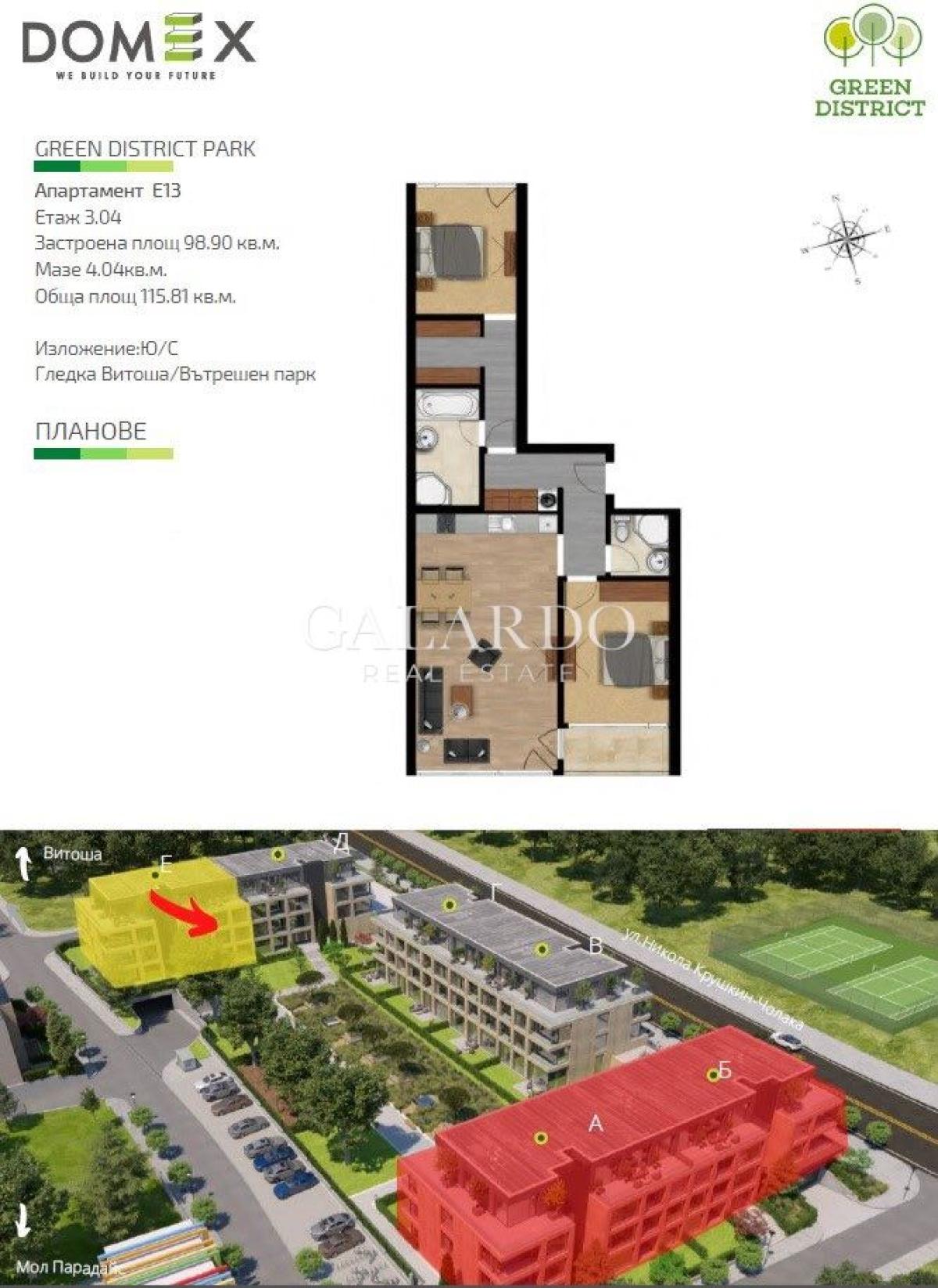 Имотът е пред АКТ 15 и ви предоставя невероятна възможност да се възползвате от последните апартаменти в този невероятен комплекс. Апартаментът е в "Зеления квартал " и ви кани да се насладите на - богато озеленяване, нова подземна и наземна инфраструктура с улици, съвременно осветление, качествено павирани тротоари с озеленяване и модерни енергоефективни решения. Цената е без включено ДДС.