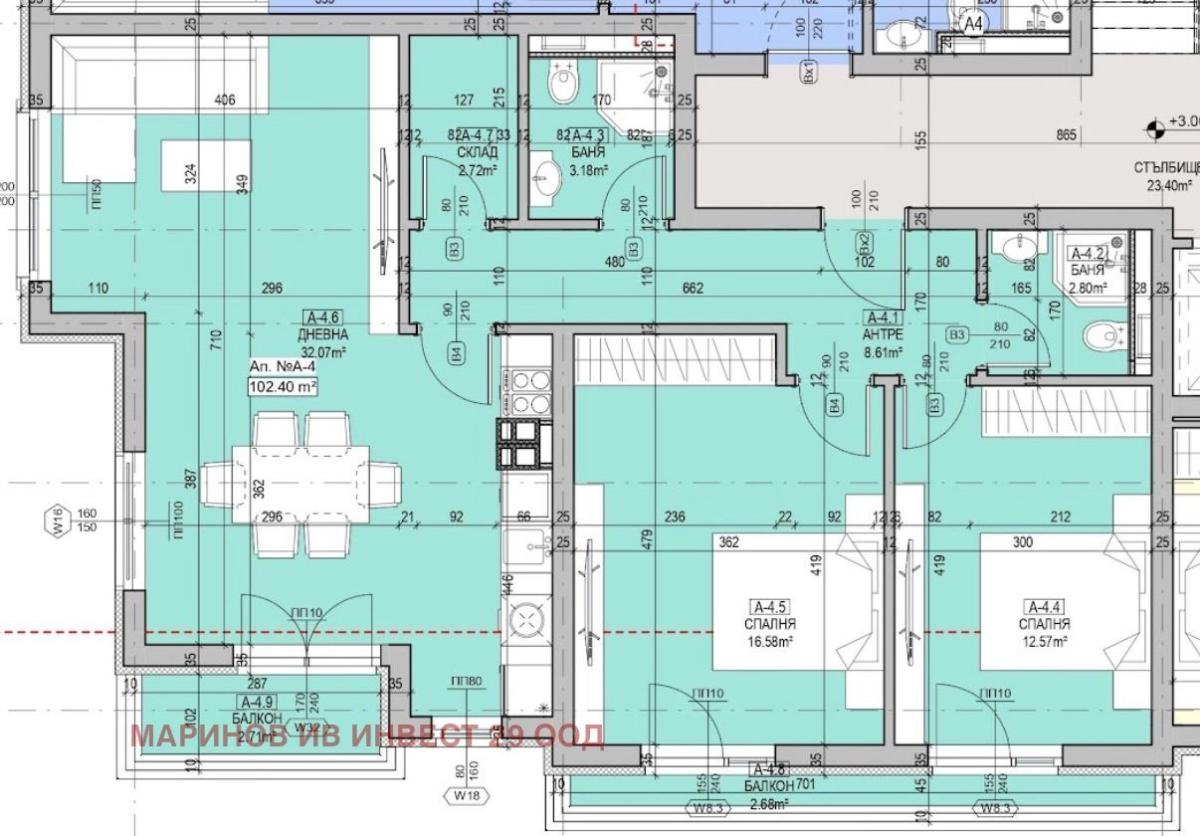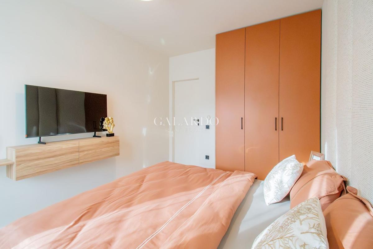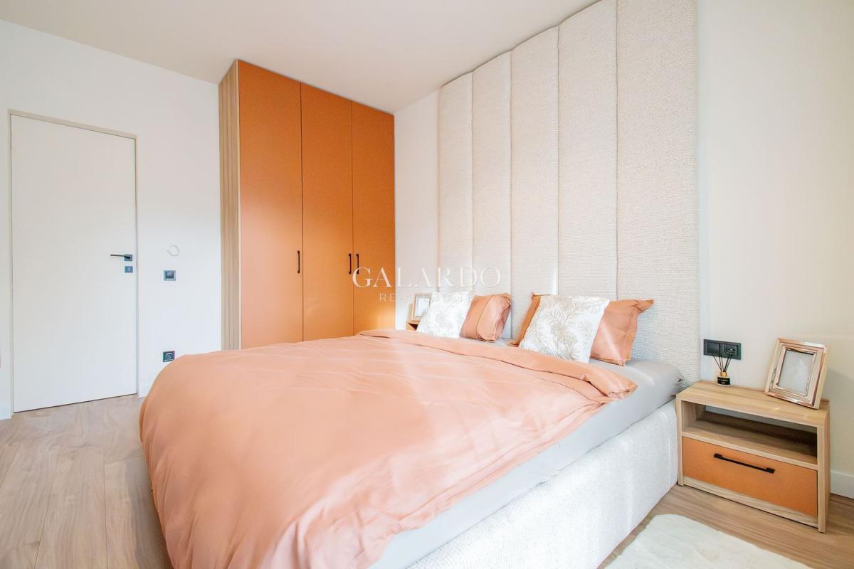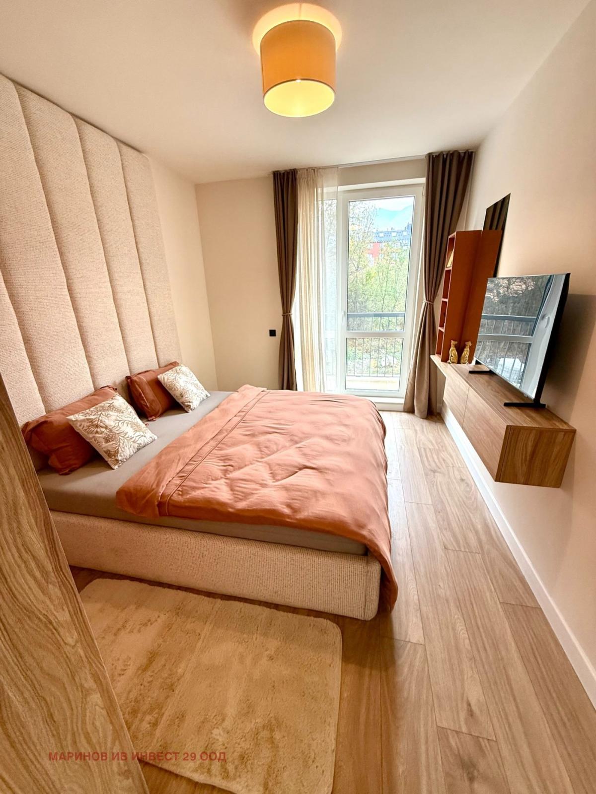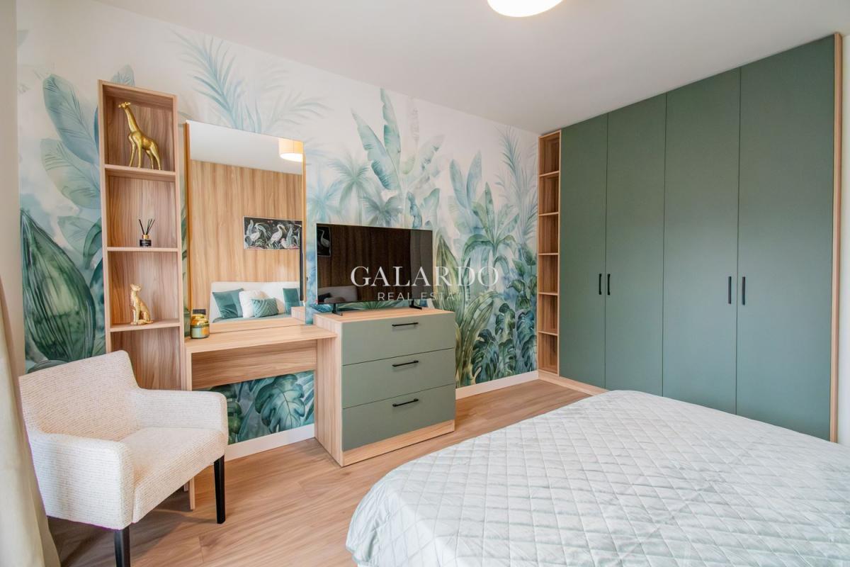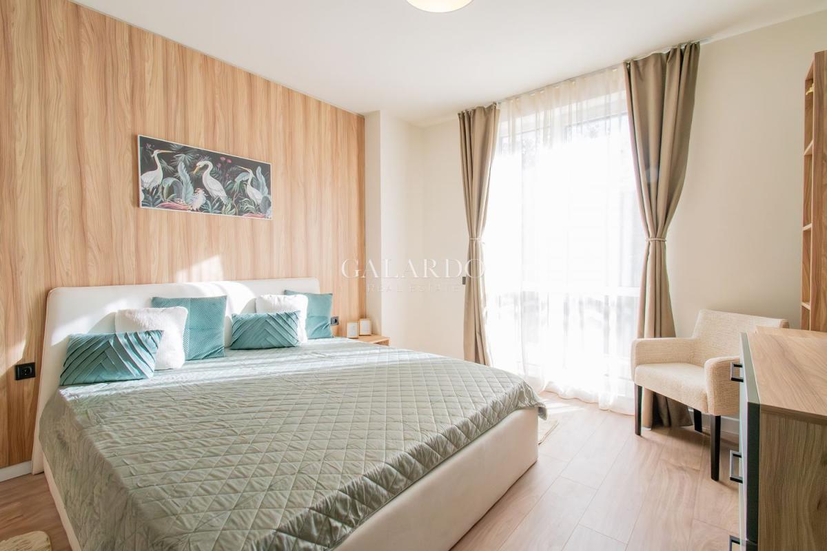 Със застроена площ от 102 кв.м, жилището предлага функционално разпределение, съчетаващо комфорт и практичност. В спалните има легла с висок клас матраци, гардероби и тоалетки, телевизор. Във всяка спалня е поставен висококачествен ламинат, а останалата част от апартамента е с испански гранитогрес от първо качество. Вратите са тапетни, а мебелировката е дело на български компании, създадени по дизайнерски проект, като цветовете създават усещане за хармония и наслада .