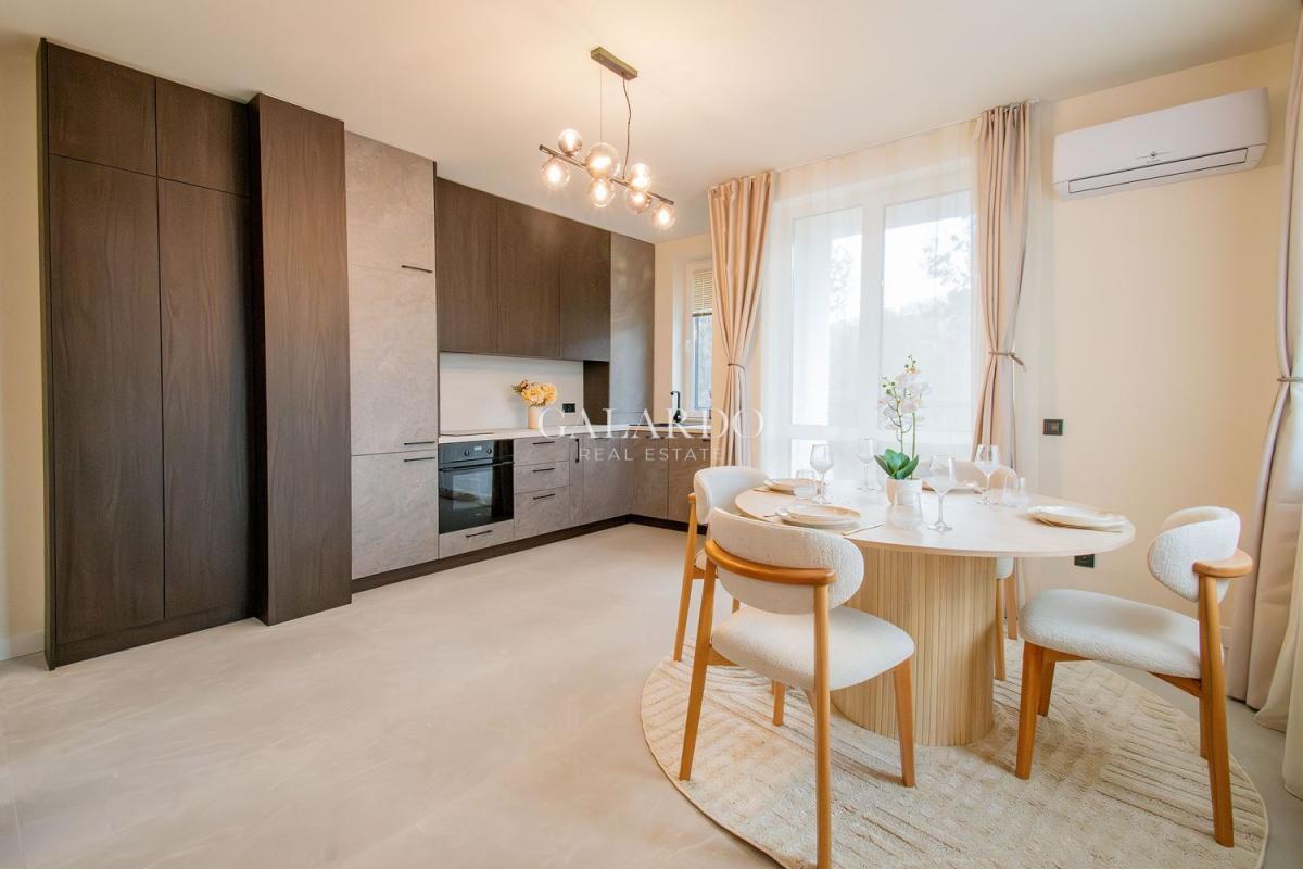 Galardo Real Estate представя елегантен тристаен апартамент в бутикова сграда, който се намира в един от най-предпочитаните квартали на гр. София - кв. "Кръстова вада". Локацията е изключително удобна, тъй като е само на 10-12 минути пеша от Paradise Center, метростанция Витоша и Южен парк. Апартаментът е разположен на втори етаж и е изцяло ориентиран към юг, което осигурява обилно количество естествена светлина и гледка към Витоша през целия ден.