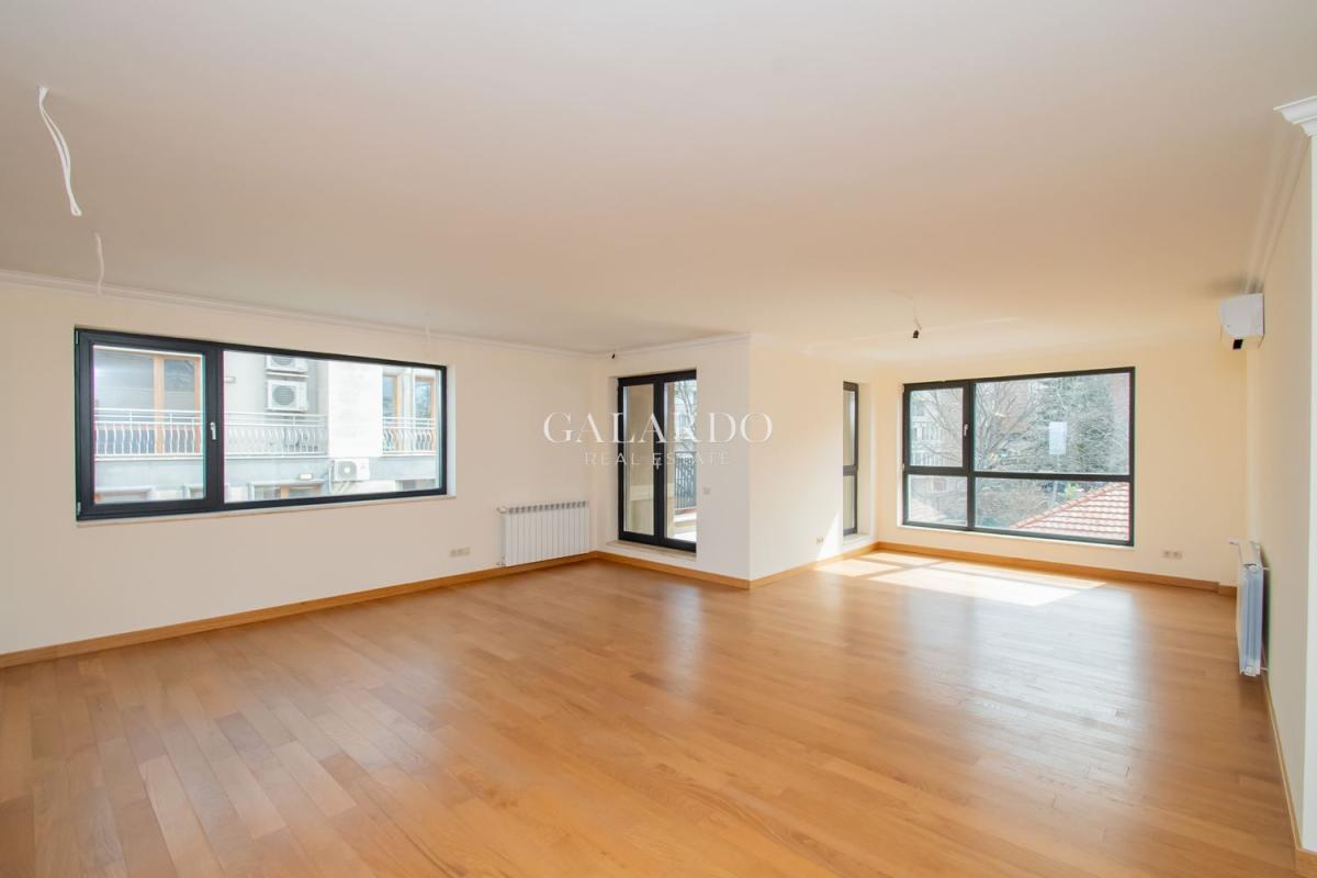 Galardo Real Estate представя на Вашето внимание просторен апартамент с четири спални, разположен в нова сграда с Акт 16 в кв. Лозенец. Жилището се предлага напълно завършено „до ключ“ с висококачествени материали и внимание към детайла. Подовите настилки в дневната и спалните са от естествен паркет, а кухненската част, баните и тоалетните са изпълнени с италиански фаянс. Интериорните врати са фурнировани, като във всяко помещение са монтирани климатици. Отоплението е решено чрез централно парно, което осигурява комфорт през зимните месеци. Сградата е въведена в експлоатация и разполага с асансьор.