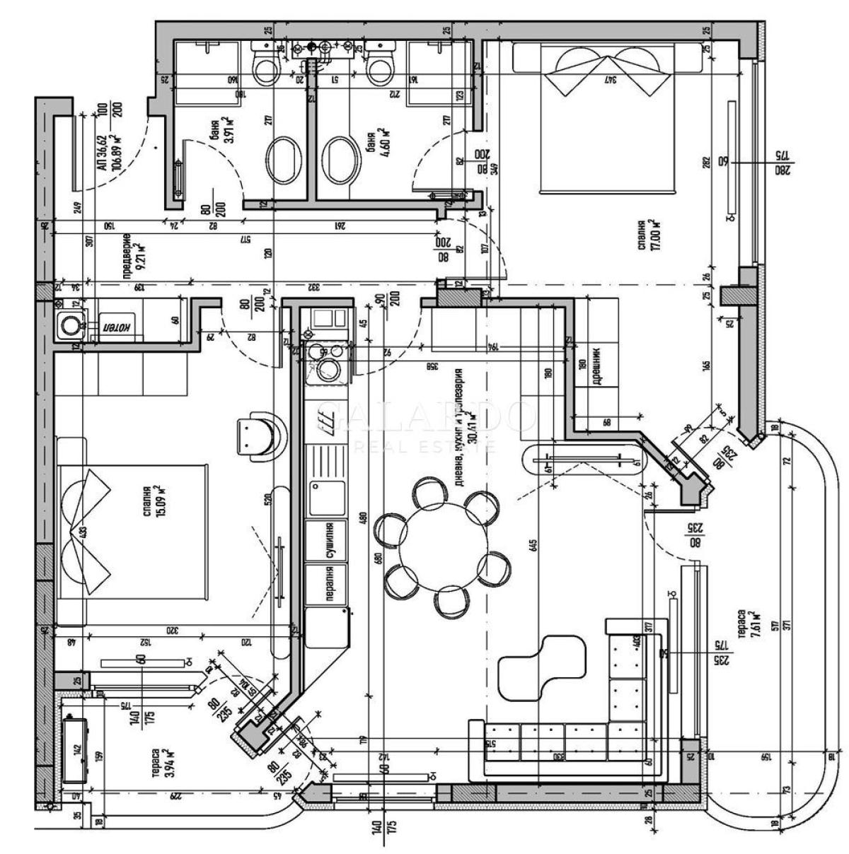 Galardo Real Estate продава просторен тристаен апартамент на много хубава локация в кв. "Малинова долина". Имотът е със застроена площ 111.65 кв.м. Изложение: изток/североизток. Апартаментът се намира в новостроящ се затворен комплекс с денонощна охрана и видеонаблюдение. Състои се от слънчева дневна с обособен кухненски бокс и трапезна зона с площ 39.72 кв.м., две спални, две бани със санитарен възел, складово помещение, антре и тераса. Има възможност за закупуване на подземно паркомясто на цена 20 000 € или двоен гараж на цена 40 000 €. Цените са с вкл. ДДС. Очаквано Разрешение за ползване - есента на 2025 година.