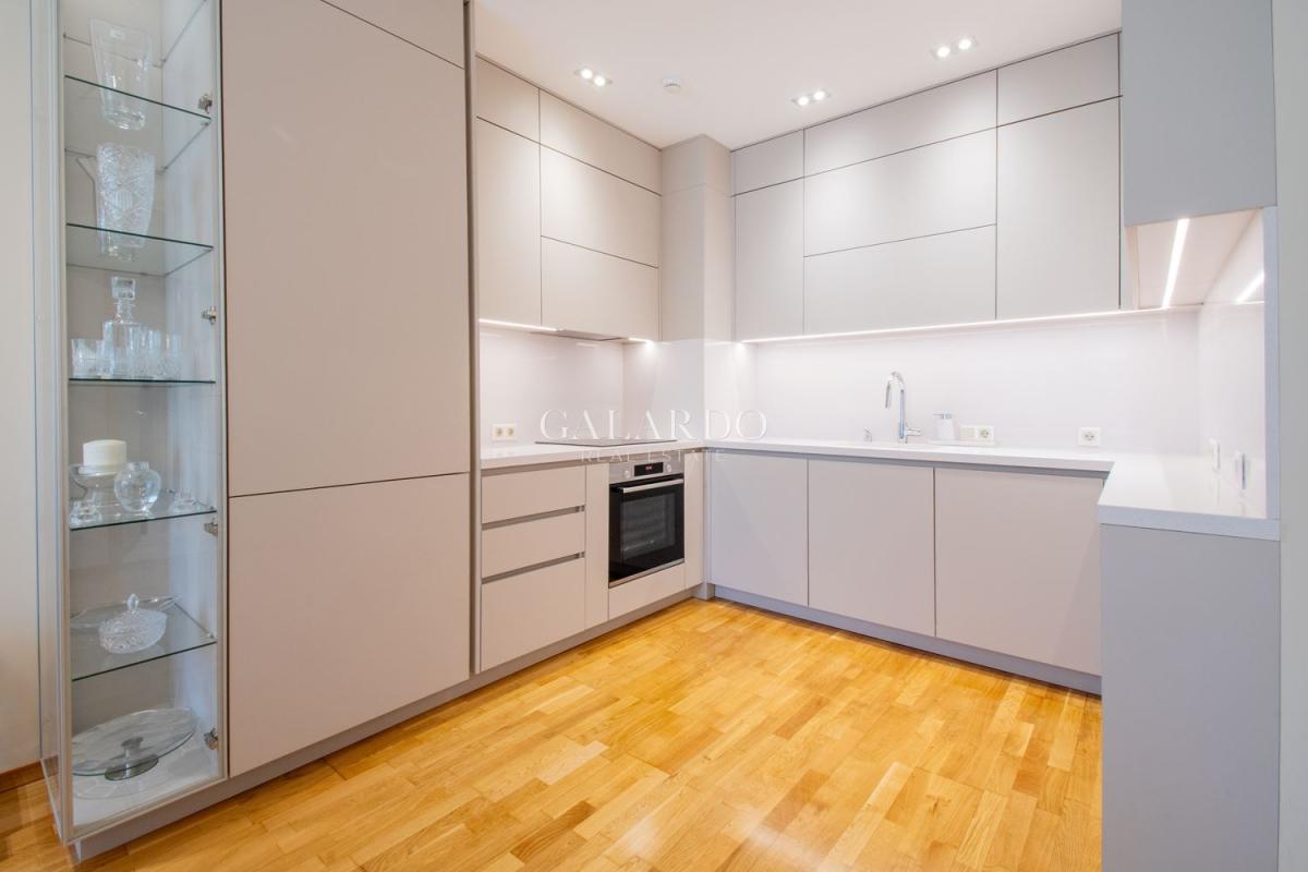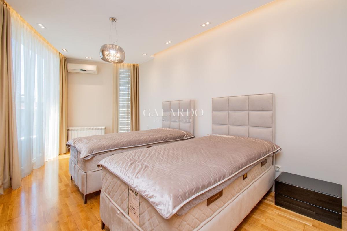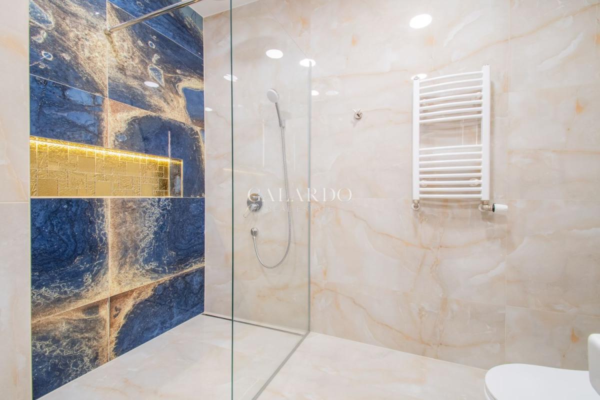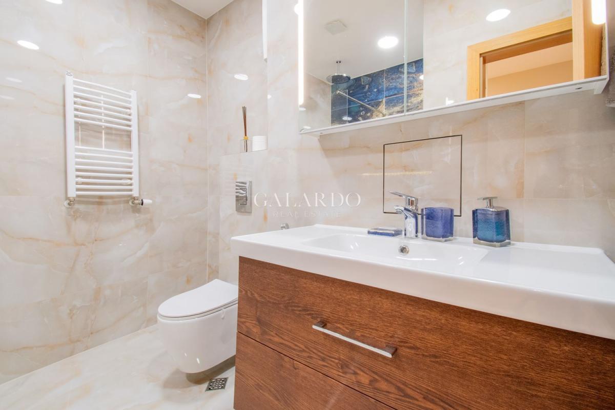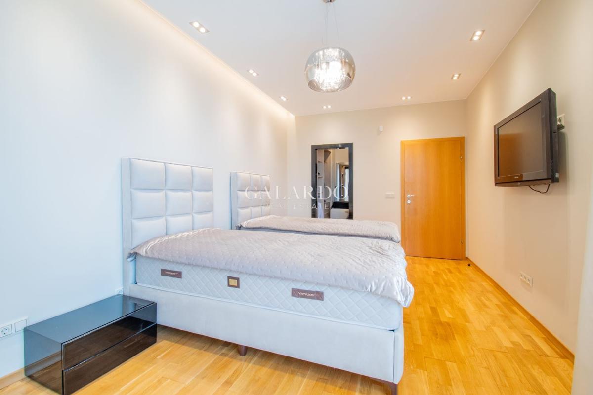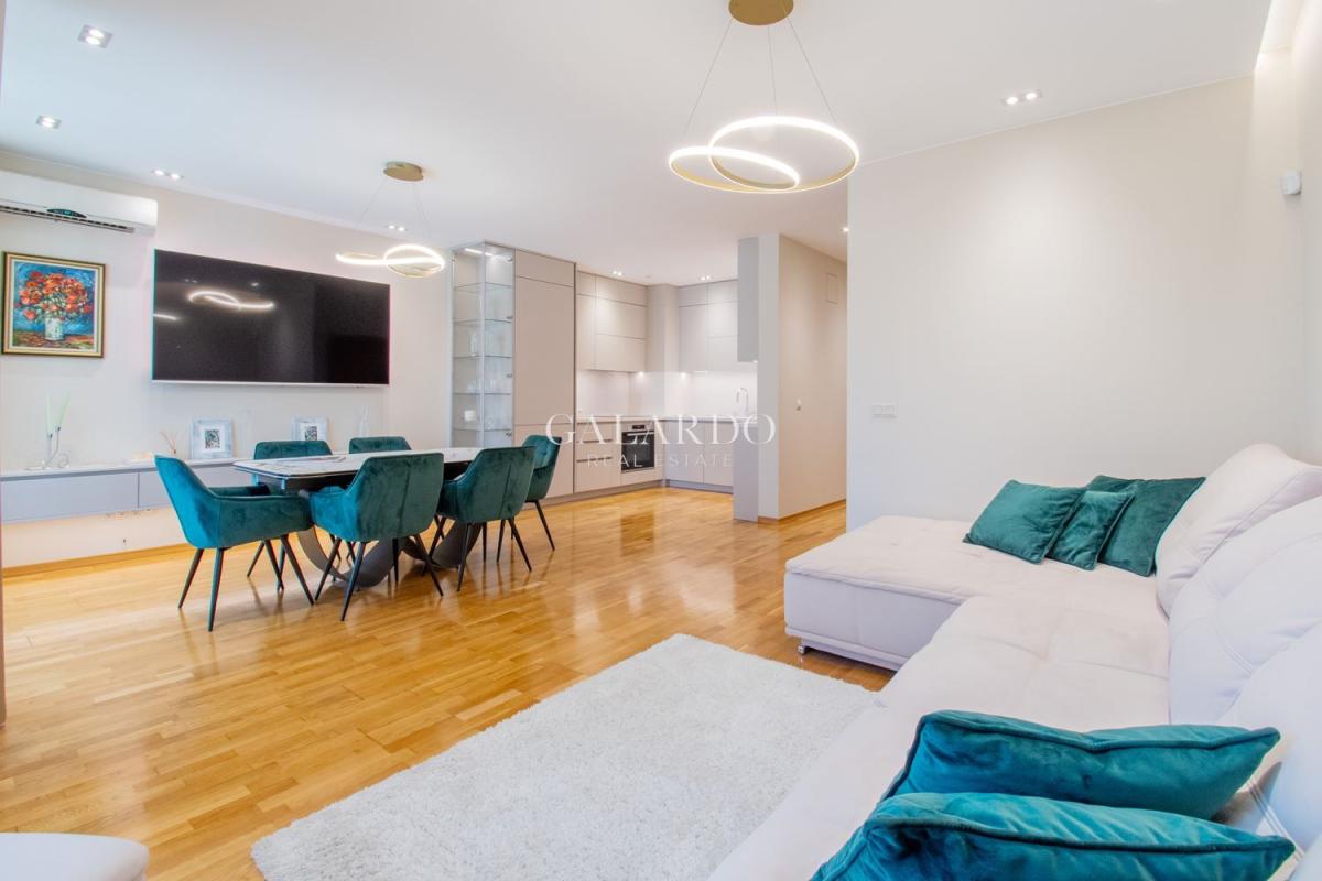 Сградата разполага с луксозни общи части, от гранит, видеонаблюдение и жива охрана. Визията на сградата се откроява с красива фасада с окачени елементи. Жилището заема четвърти етаж от седеметажната сграда и е 164 кв.м с идеалните части. Изложението е изток/югозапад, с гледки към града и Витоша. Имотът е изключително тих, на втора линия от бул.България и се предлага напълно обзаведено по дизайнерски проект, като се откроява с висококачествено изпълнение на довършителните работи.