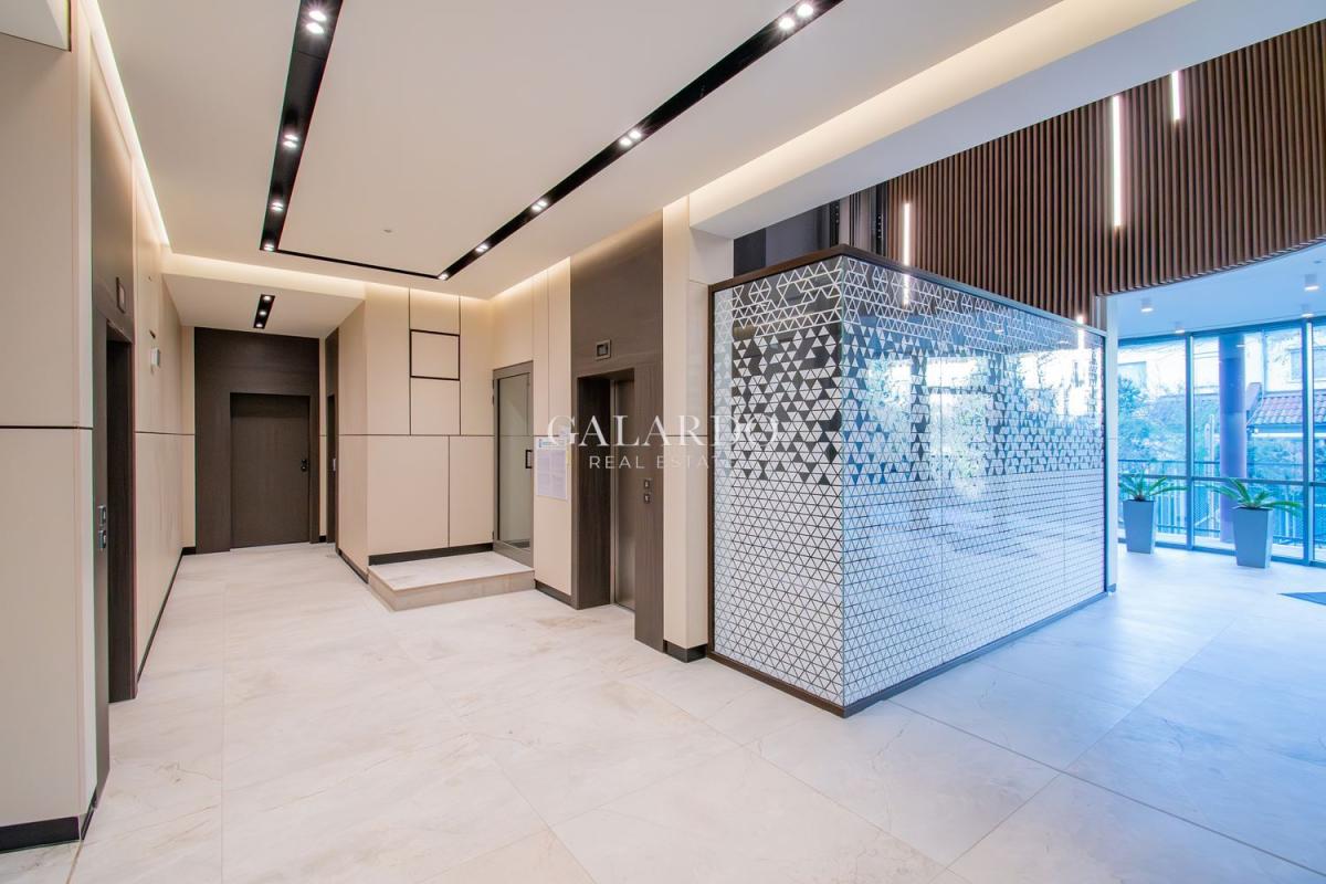 Имотът се намира на 7-ми и 8-ми етаж в представителна сграда с Акт 16 от 2024 г., и впечатлява с модерна архитектура, функционално разпределение и високо технологично оборудване - общите части на сградата са модерно изпълнени и създават усещане за комфорт и простор- голямо емпоре с три асансьора -два от които панорамни, окачена фасада с трислоен стъклопакет и швейцарски керамични плоскости. Коридорите и площадките на сградата са с модерни ламперии и декоративни пана допълващи усещането за стил, качество и уют.