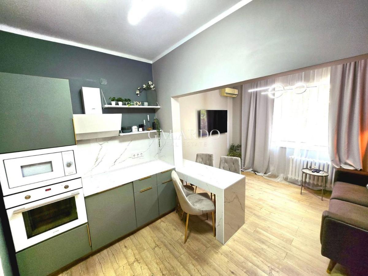 Имотът е основно ремонтиран, със сменена Ел. и ВиК инсталации. Направен е качествен и дизайнерски ремонт. Напълно обзаведен и оборудван. Към имота има мазе и таван, а също така и идеални части от земята. Изток/запад. Етаж 1-ви висок над магазини.