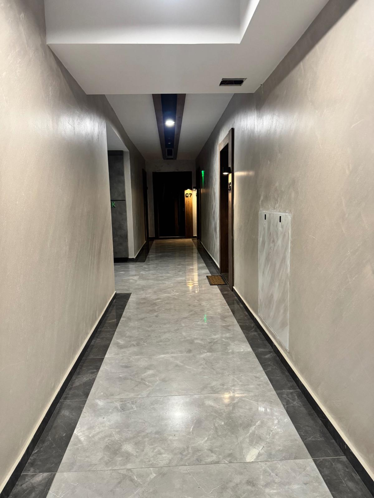 Апартаментът е шпаклован и боядисан, с поставено осветление и изградени падащи тавани, в двете спални има положени настилки.