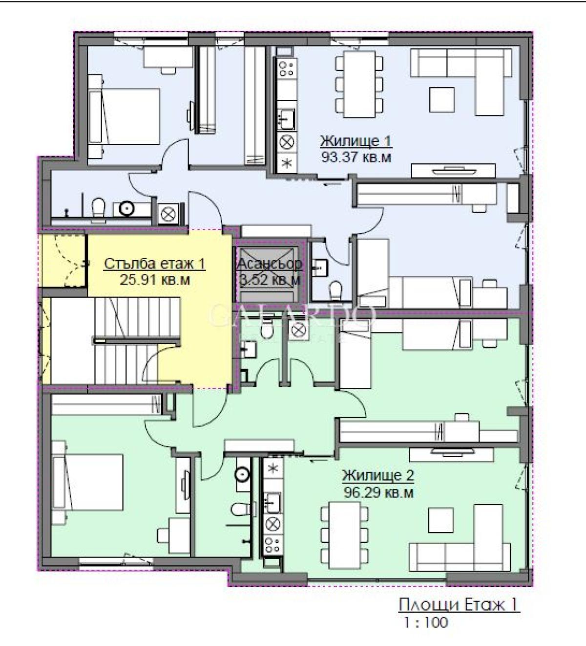 Този апартамент е идеален за семейства или двойки, които търсят удобно и просторно жилище. Просторна всекидневна с кухня, две комфортни спални и две бани осигуряват всичко необходимо за вашето удобство. Има Двор към Жилище от 110.15 м2.