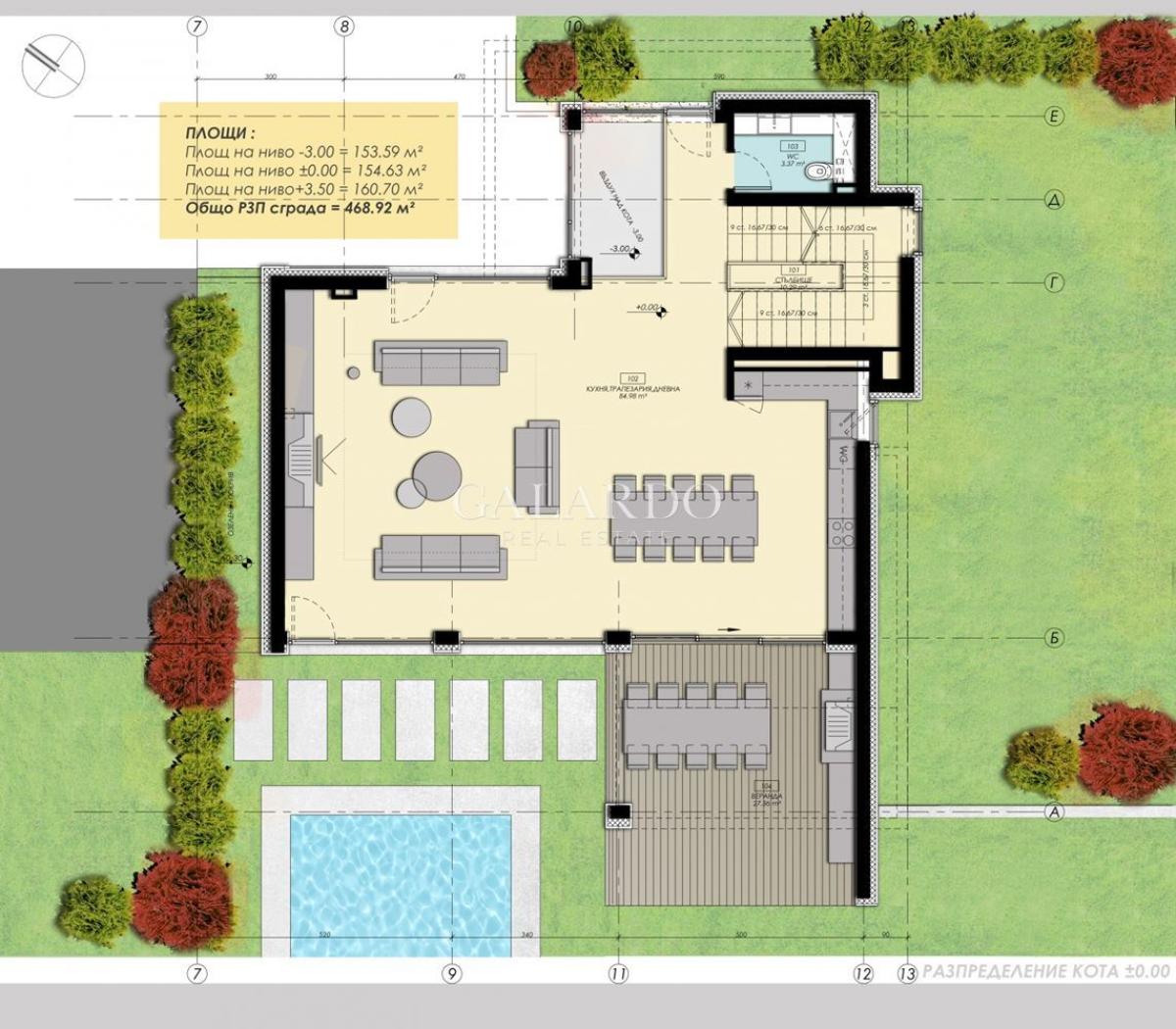 Galardo Real Estate има удоволствието да представи ултра модерна къща с басейн за продажба в затворен комплекс.
