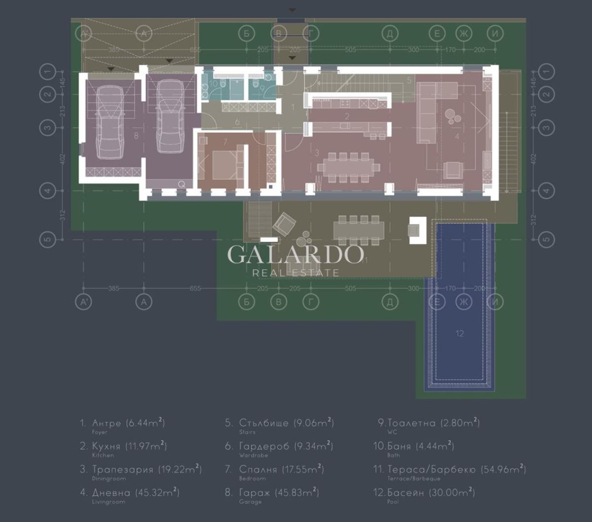 Galardo Real Estate продава прекрасна еднофамилна къща с басейн в м-т "Детски град". Къщата е самостоятелна, със съвременен дизайн и е в полите на Витоша. Зоната е тиха, слънчева, зелена и почти цялостно застроена с еднофамилни къщи. Улиците са с изградена инфраструктура. От имота се разкриват красиви гледки към гора и красивата местност. Прилежащ голям озеленен двор и двоен гараж. Светлата височина на етажите е 3 м. Отоплението е на термопомпа. Заложени са първокласни материали, дограма и оборудване. С акт 16. Цената е без вкл. ДДС.