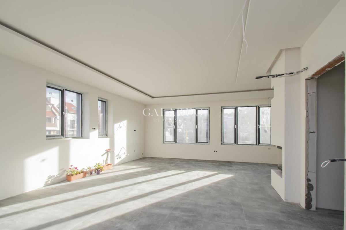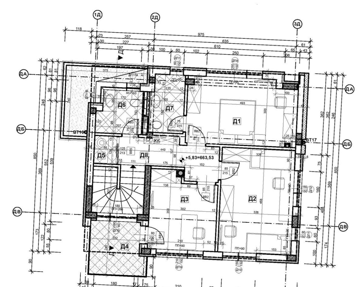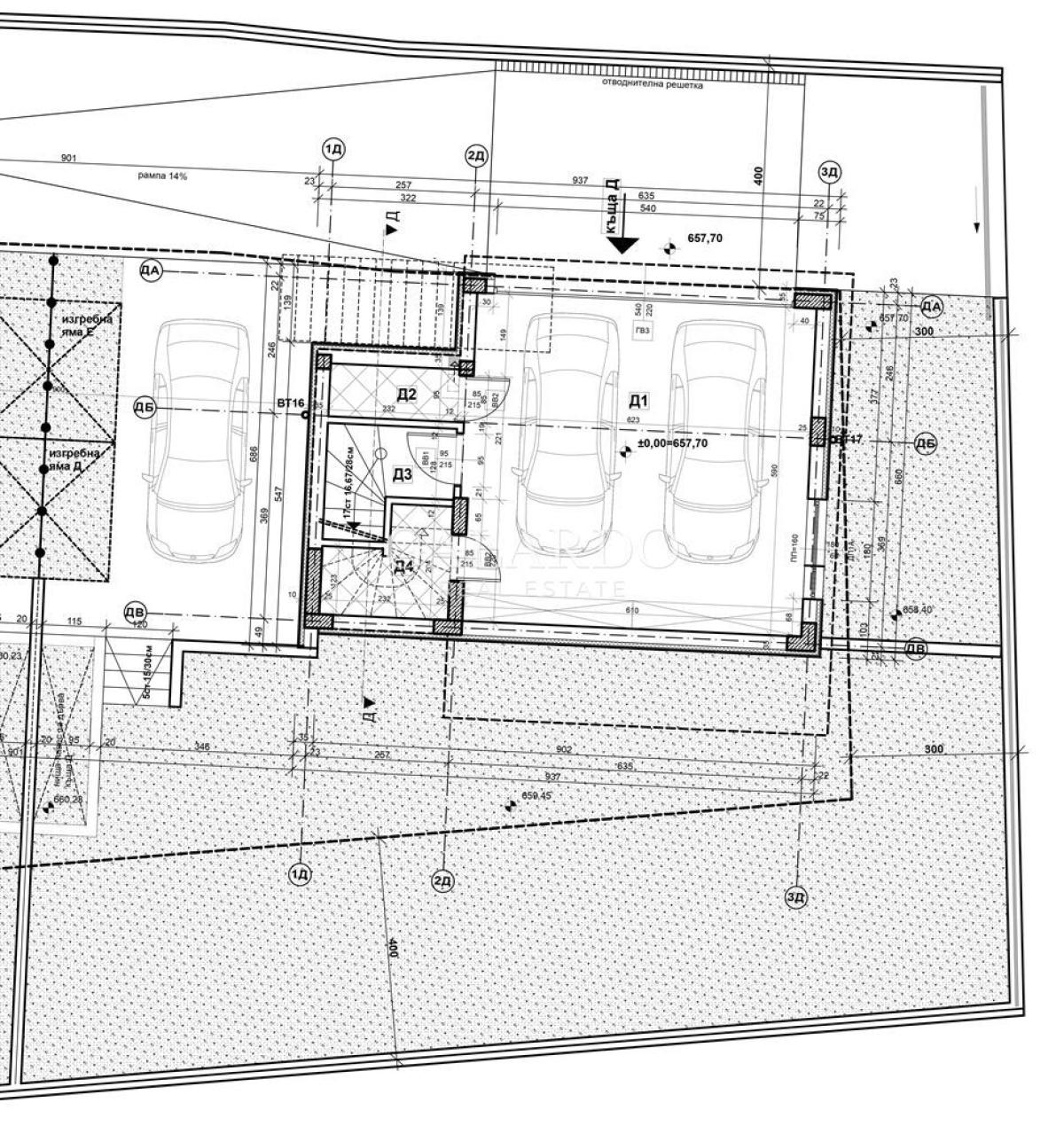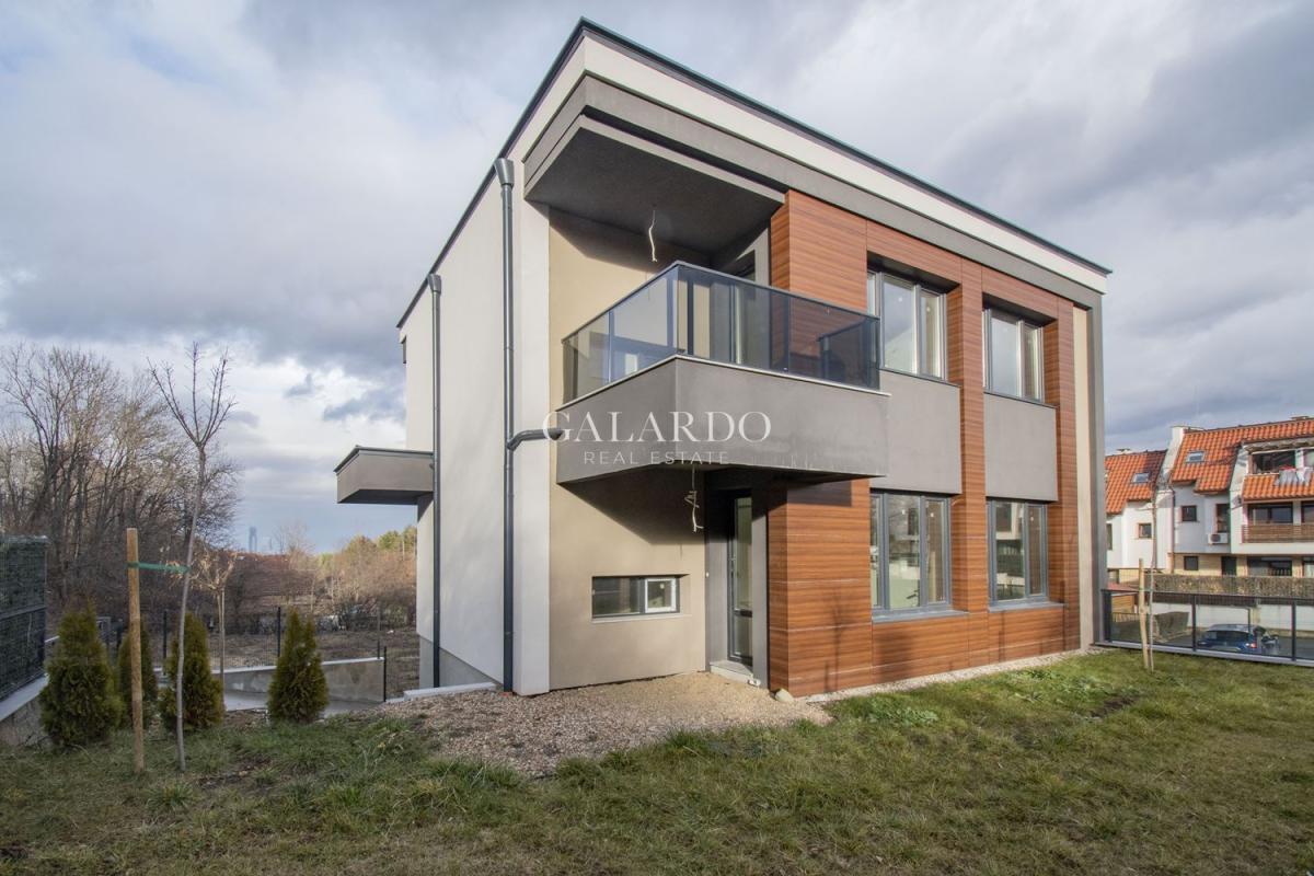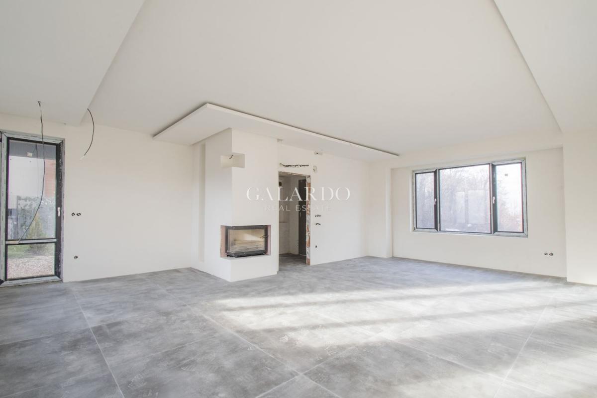 Къщата е част от комплекс с 6 къщи и има следното разпределение: Етаж 0 - двоен гараж и техн. помещение. Етаж 1- входно антре, дневна с кухня и трапезария и тоалетна. Етаж 2- спалня със самостоятелна баня, още 2 спални, втора баня с тоалетна тераса и мокро помещение. Цената е с довършителни работи, които включват фино шпакловани стени в цялата къща, камина, висококачествен гранитогрес и окачен таван на ет.1. Има изградена инсталация за подово отопление и изводи за конвектори, 7-камерна дограма с трислоен пакет Aluplast, със самостоятелна пречиствателна станция