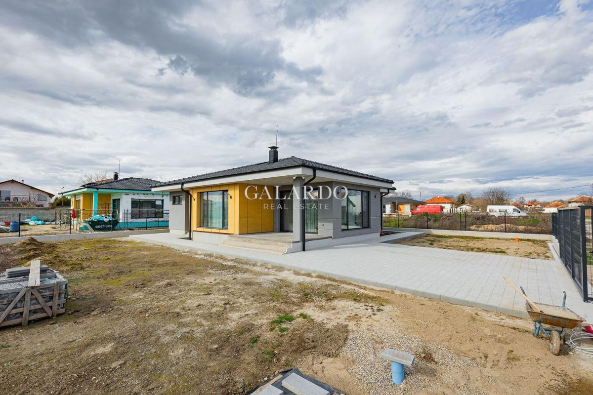 Galardo Real Еstate Plovdiv предлага за продажба модерна еднофамилна къща на един етаж с три спални, разположена в много спокоен район на Оризаре, гр. Пловдив със собствено дворно пространство 680 кв м и външни паркоместа. На 5 минути с кола от Пловдив.