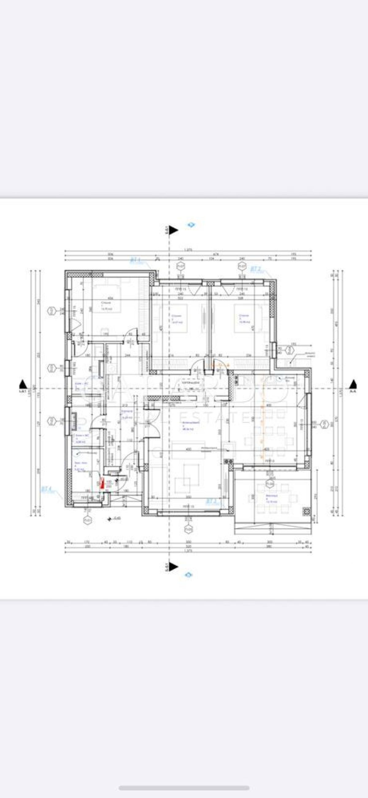 Къщата е с РЗП 175 кв м и парцел/двор 680 кв м, с разпределение: