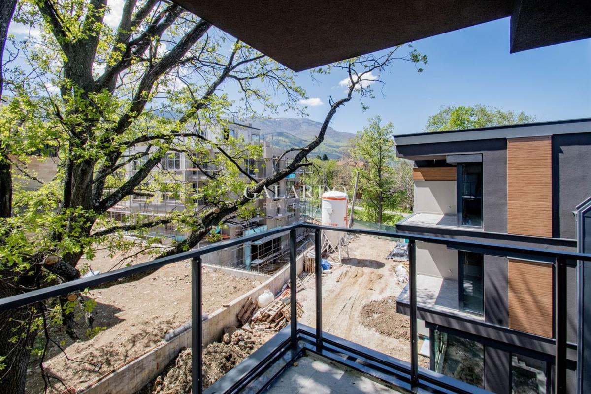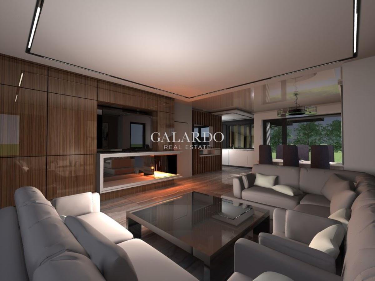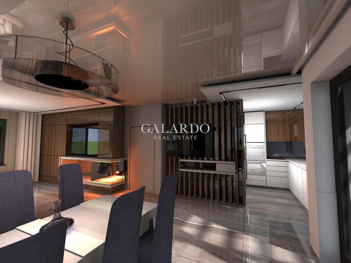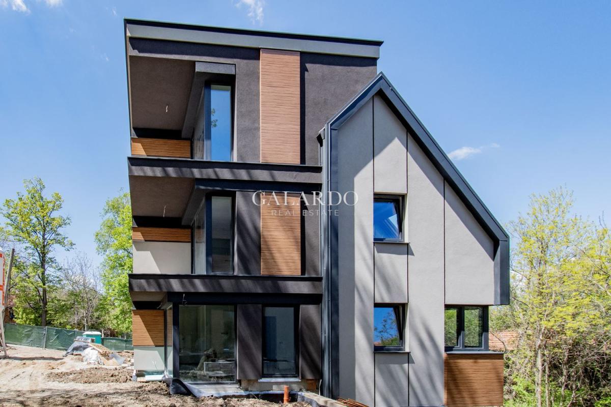 Galardo Real Estate продава нова, модерна къща със собствен двор в полите на Витоша с Акт 16. Къщата е ситуирана в затворен комплекс в кв. "Симеоново". Локацията е с бърз достъп до бул. "Симеоновско шосе" и Околовръстен път. РЗП: 254 кв.м. Прилежащ двор: 250 кв.м. Настоящ етап на строителство: Акт 15. Районът е с пет частни детски градини и училище и различни спирки на градския транспорт. Проектът на къщата е минималистичен, с комбинация от плоски и скатни покриви, проектирани със скрито отводняване, без видими стрехи, което придава модерен и стилен вид на къщата.