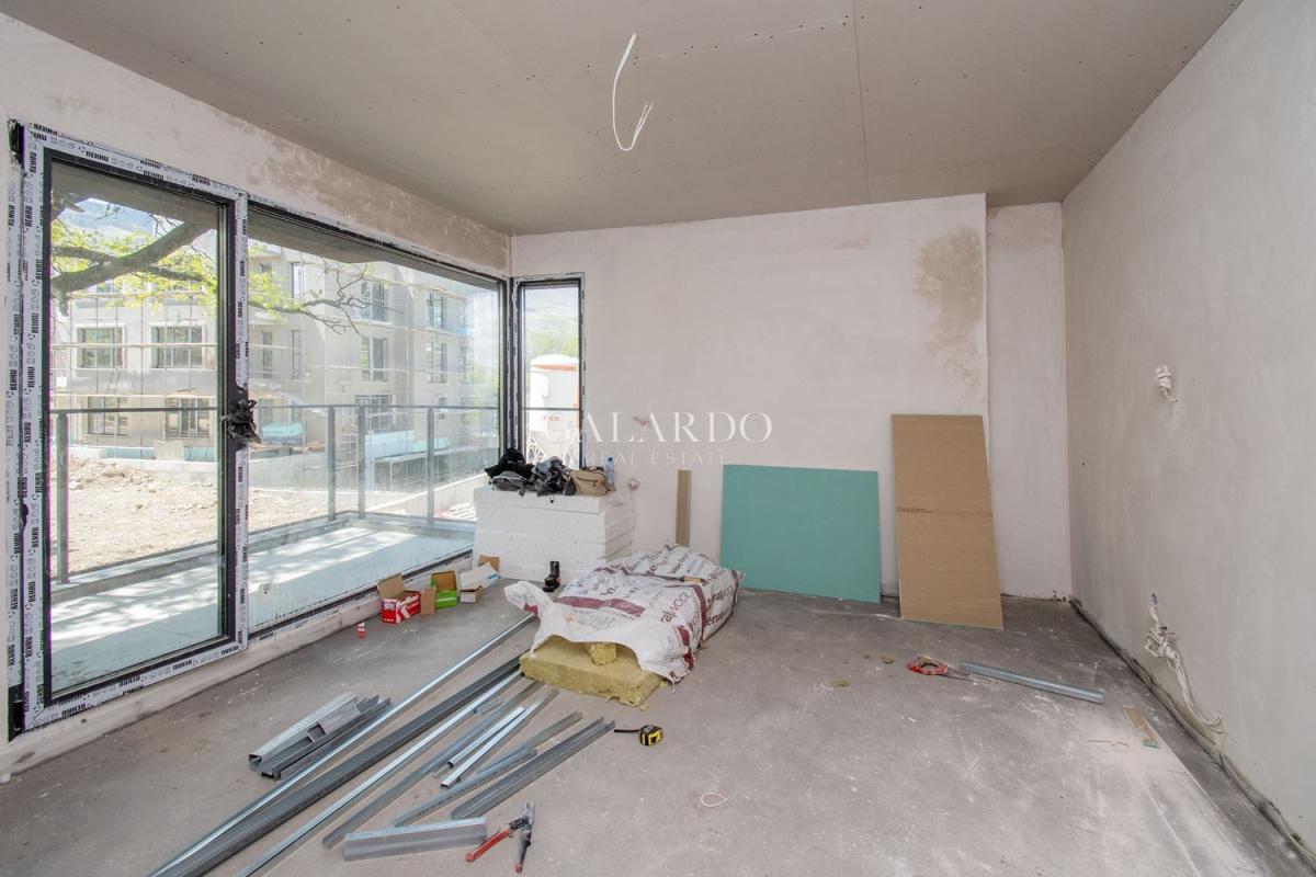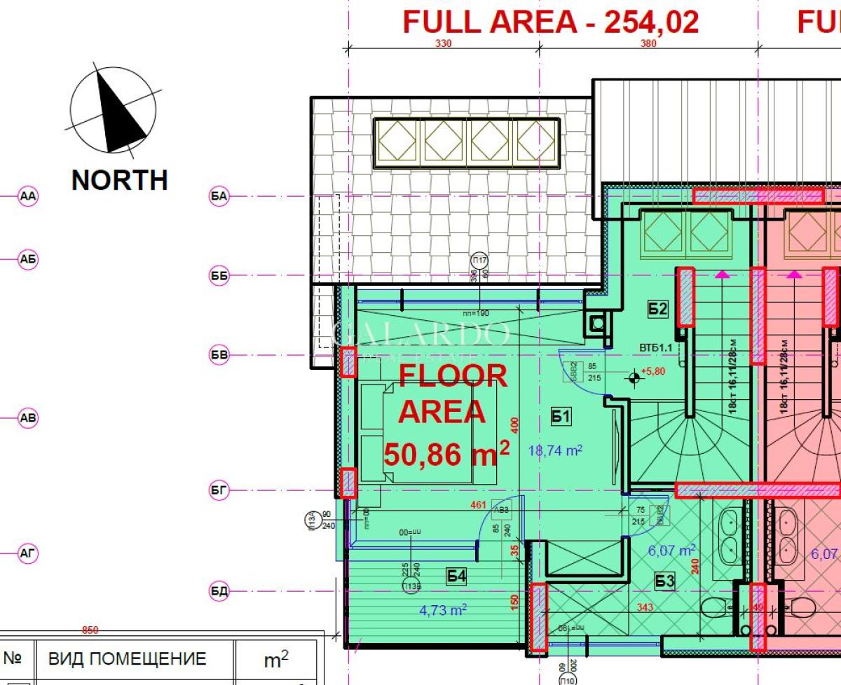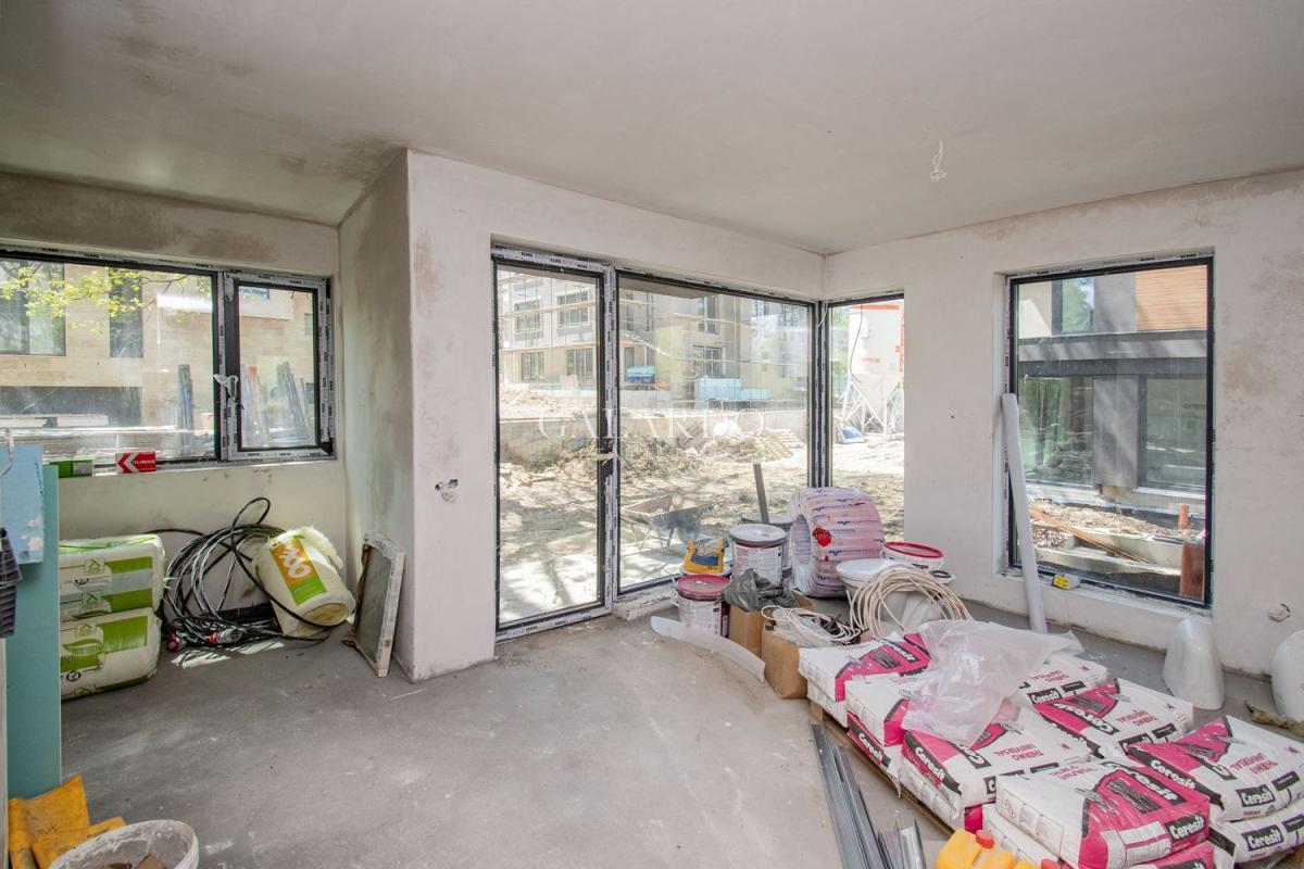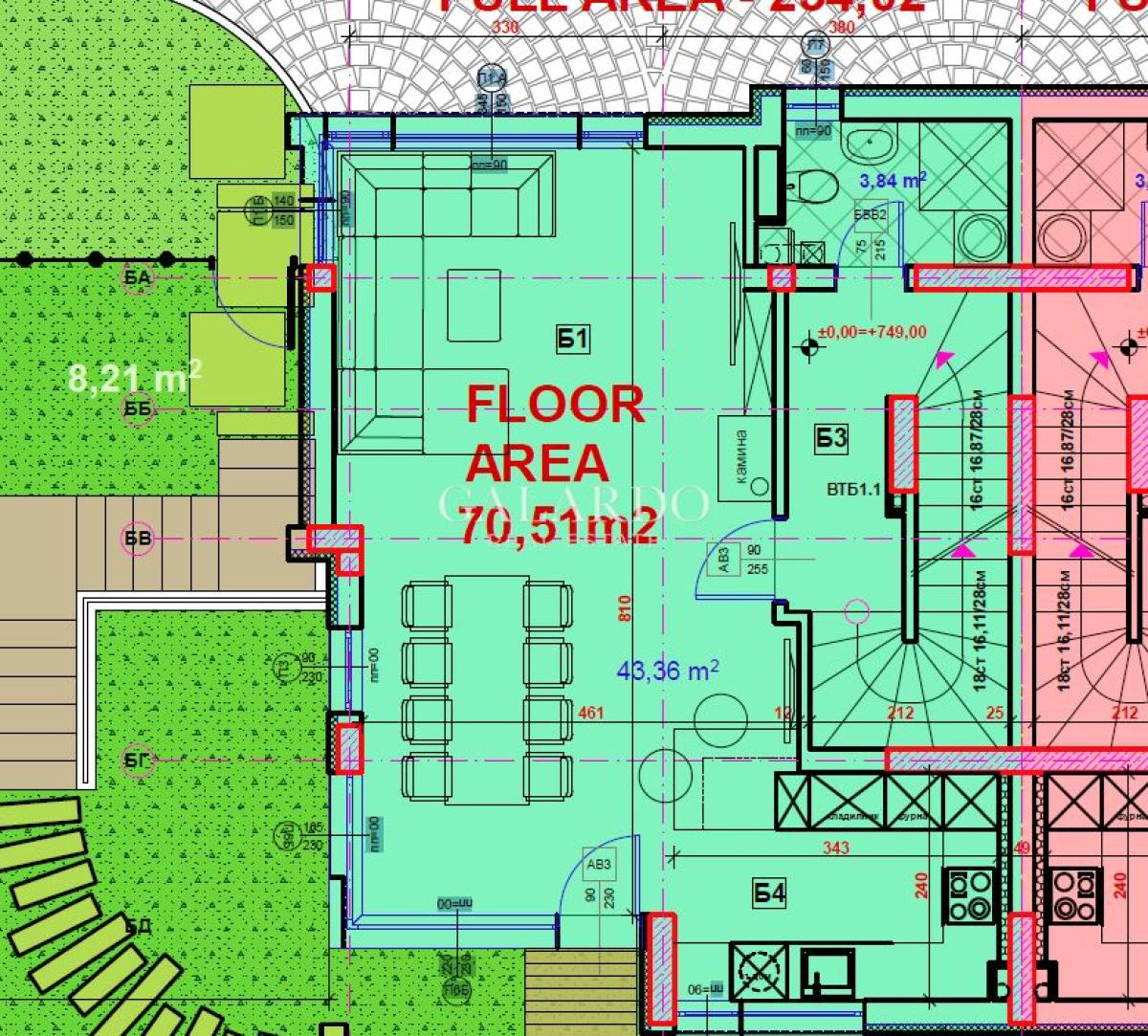 Galardo Real Estate продава нова, модерна къща със собствен двор в полите на Витоша с Акт 16. Къщата е ситуирана в затворен комплекс в кв. "Симеоново". Локацията е с бърз достъп до бул. "Симеоновско шосе" и Околовръстен път. РЗП: 254 кв.м. Прилежащ двор: 250 кв.м. Настоящ етап на строителство: Акт 15. Районът е с пет частни детски градини и училище и различни спирки на градския транспорт. Проектът на къщата е минималистичен, с комбинация от плоски и скатни покриви, проектирани със скрито отводняване, без видими стрехи, което придава модерен и стилен вид на къщата.