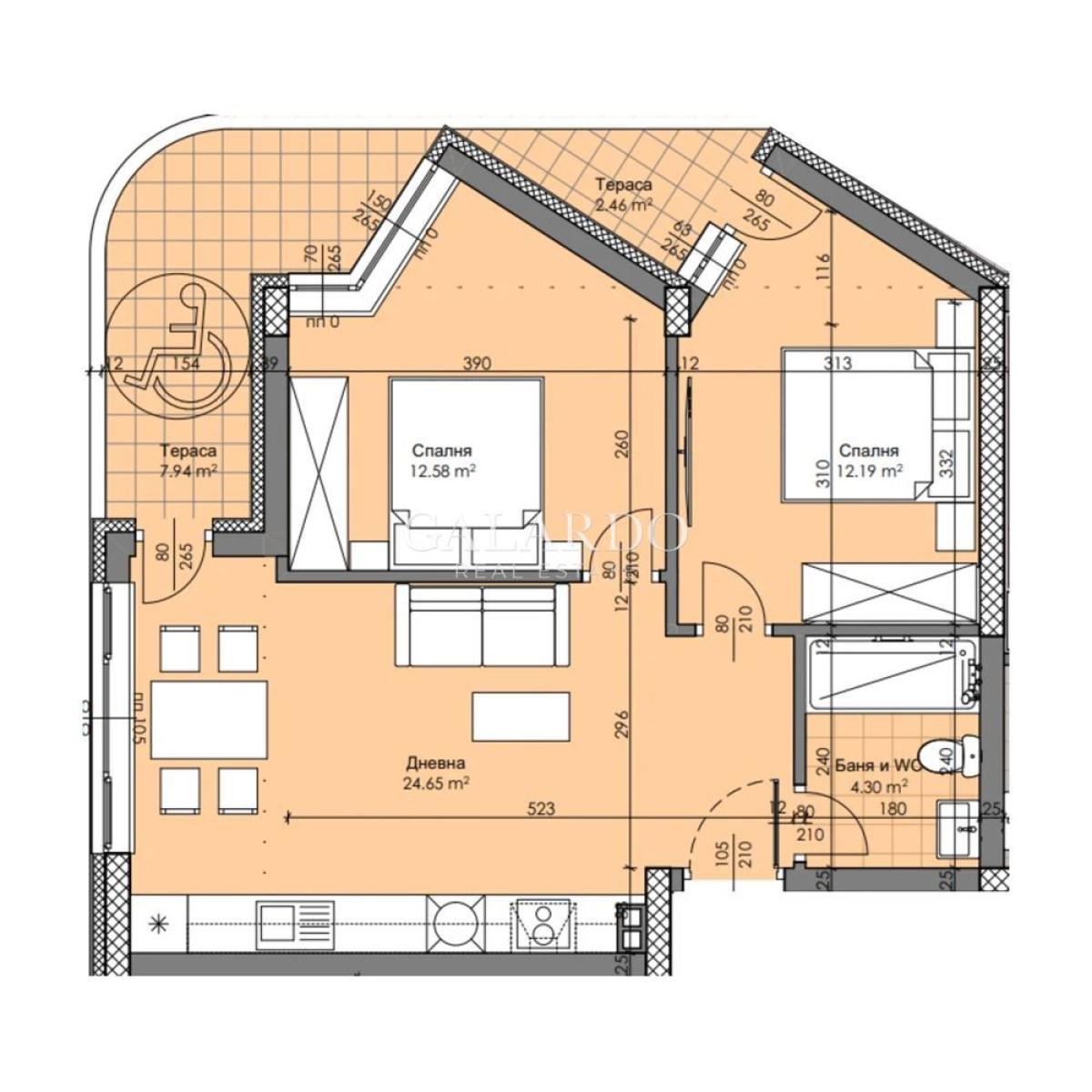 Galardo real estate предлага тристаен апартамент в новострояща се сграда, в квартал Христо Смирненски.