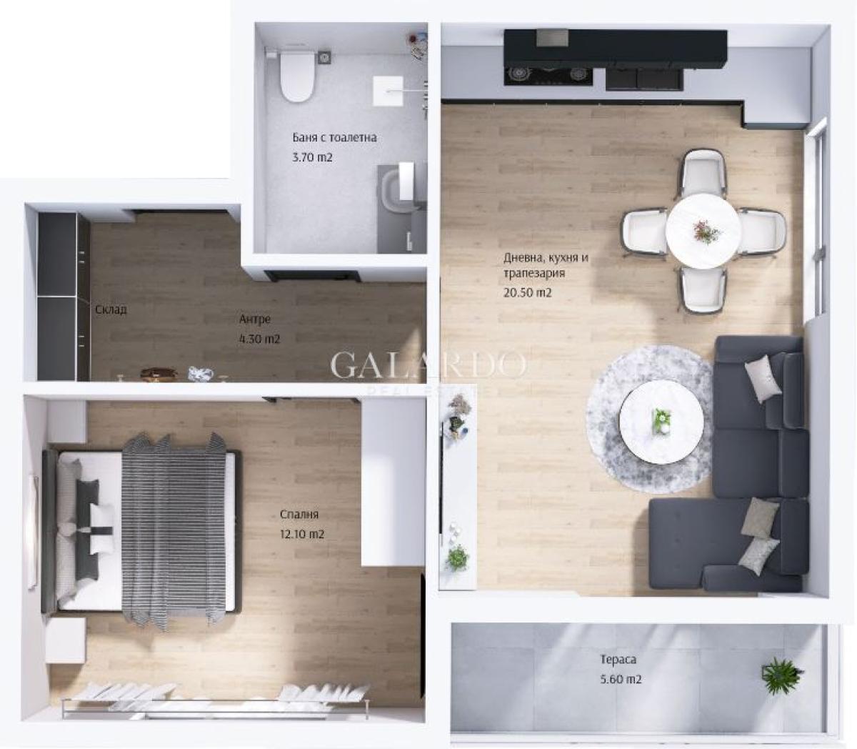 Galardo real estate предлага двустаен апартамент в новострояща се сграда, в квартал Тракия.