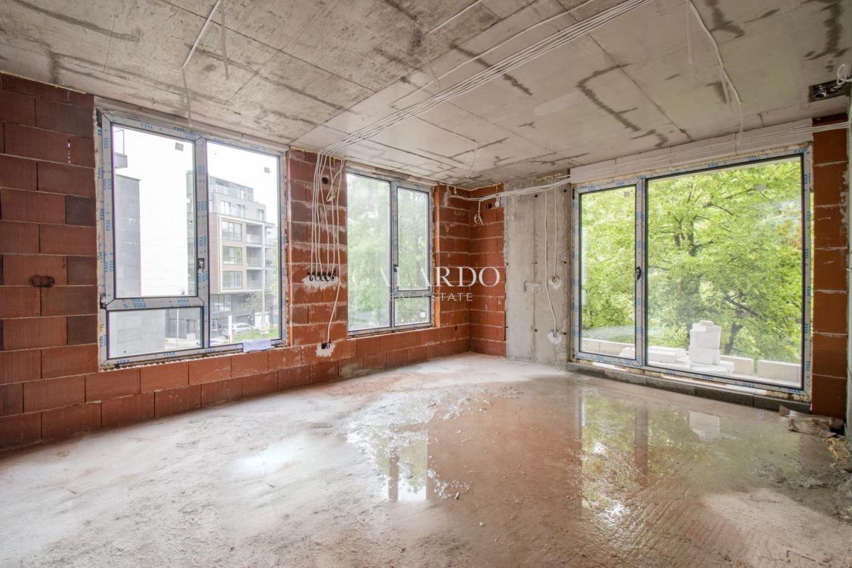 Жилището се намира на 3-ти етаж в новострояща се сграда срещу Южния парк.